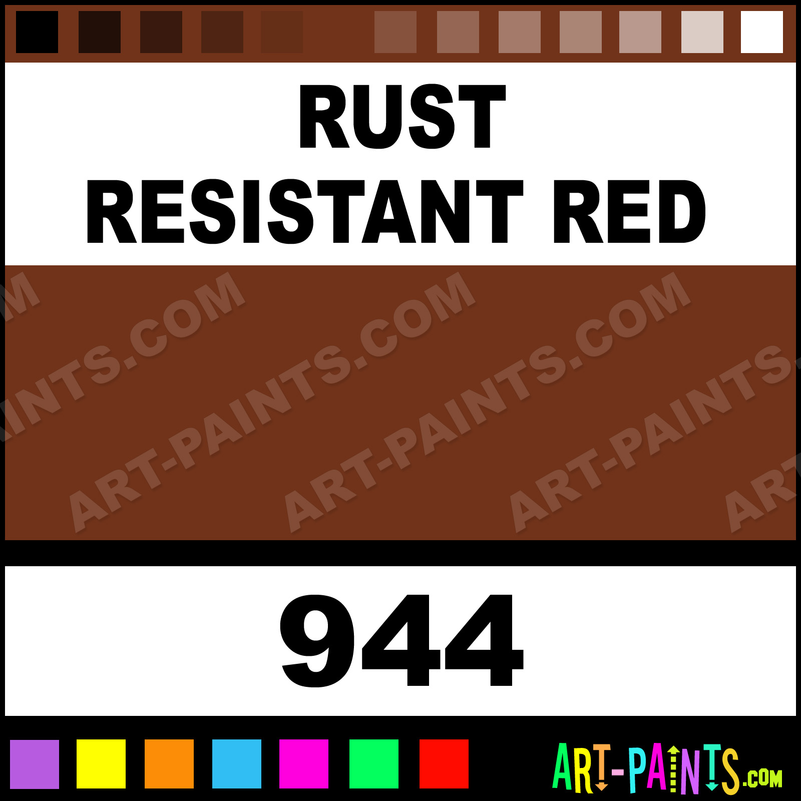 This beautiful Primers Spray Paint shade is called Rust Resistant Red, and comes from a Aerosol company called Orr-Lac. Their product number, along with the HTML color code, RGB, and CMYK codes are listed below. This Beautiful Shade of Rust Resistant Red and others can be found in the Orr-Lac Primers Art Paint Gallery! Also be sure to browse through the other wonderful Professional Color Galleries which are great for Decorative Art or Graffiti Art to see more of Orr-Lac Primers Spray Paints, Brands and other Aerosol Paint Manufacturers. And as always, Paint Paint Paint!   -Art-Paints.com