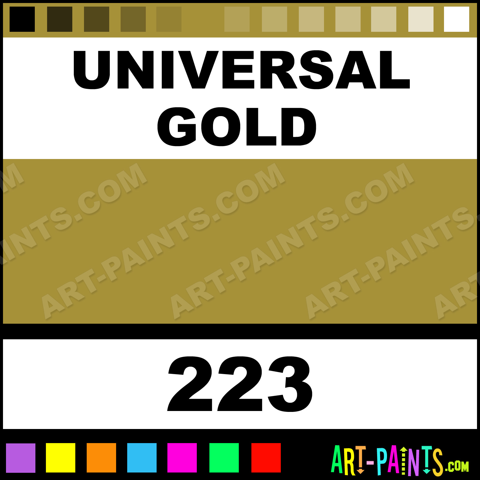 This beautiful Engine Enamel Spray Paint shade is called Universal Gold, and comes from a Aerosol company called Plasti-Kote. Their product number, along with the HTML color code, RGB, and CMYK codes are listed below. This Beautiful Shade of Universal Gold and others can be found in the Plasti-Kote Engine Enamel Art Paint Gallery! Also be sure to browse through the other wonderful Professional Color Galleries which are great for Decorative Art or Graffiti Art to see more of Plasti-Kote Engine Enamel Spray Paints, Brands and other Aerosol Paint Manufacturers. And as always, Paint Paint Paint!   -Art-Paints.com