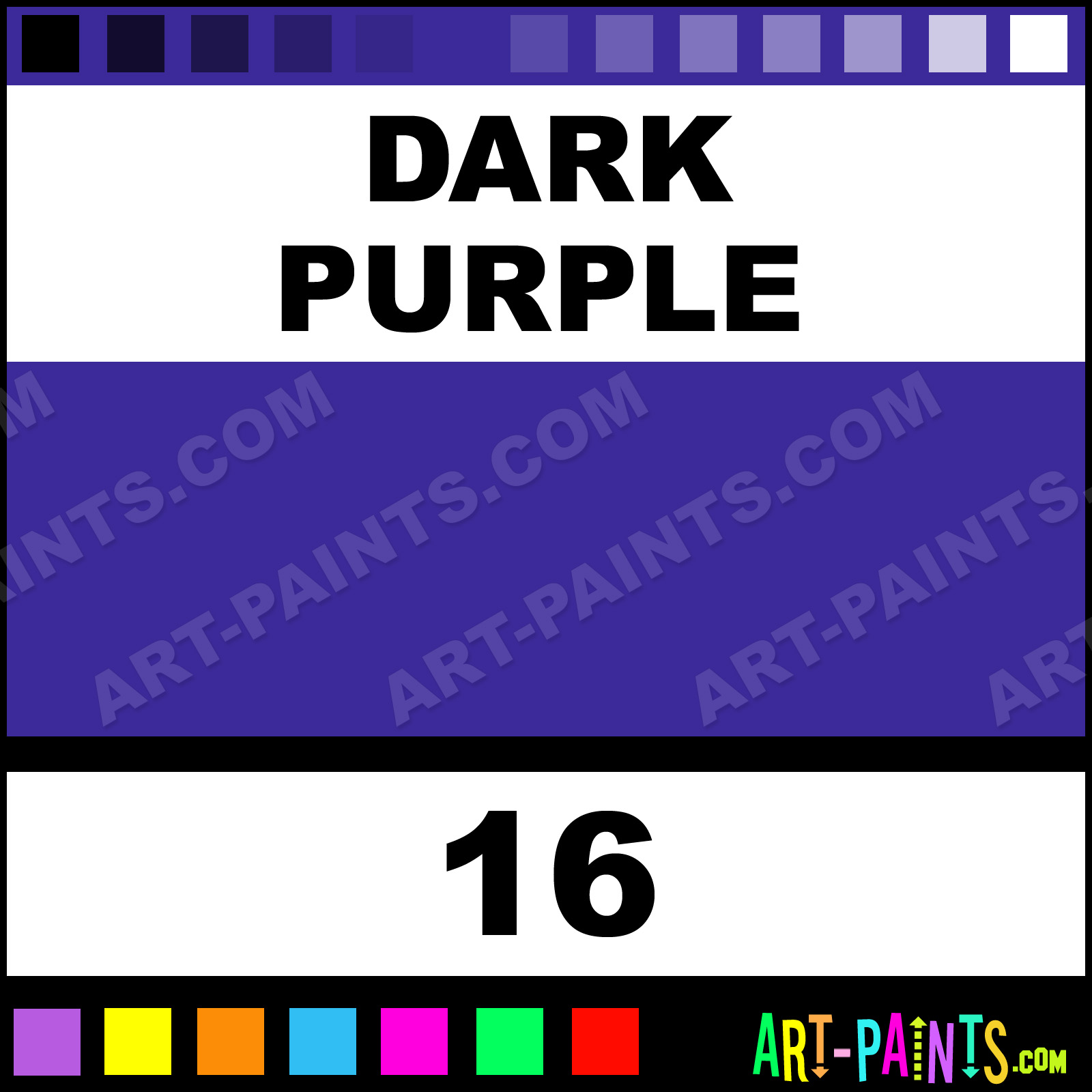 This beautiful Bottle Tattoo Ink and Pigment shade is called Dark Purple, and comes from a company called Eternal Ink. Their product number, along with the HTML color code, RGB, and CMYK codes are listed below. This Beautiful Shade of Dark Purple and others can be found in the Eternal Ink Bottle Art Paint Gallery! Also be sure to browse through the other wonderful Professional Ink Color Galleries to see more of Eternal Ink Bottle Tattoo Ink Brand Paints and other Pigment Paint Manufacturers. And as always, Paint Paint Paint! -Art-Paints.com
