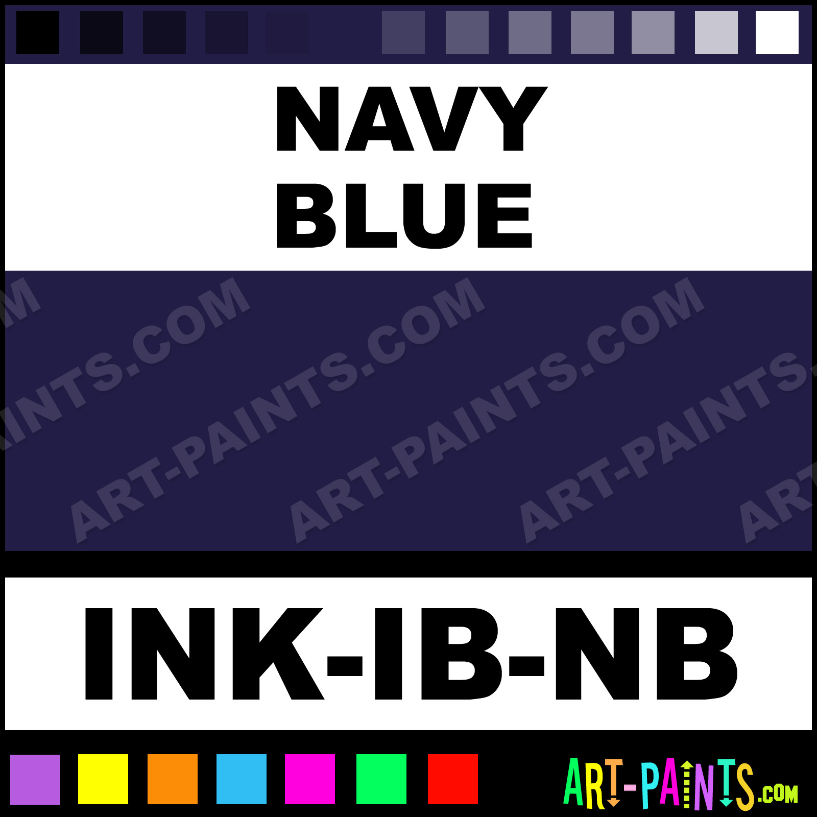This beautiful Ink Tattoo Ink and Pigment shade is called Navy Blue, and comes from a company called Iron Butterfly. Their product number, along with the HTML color code, RGB, and CMYK codes are listed below. This Beautiful Shade of Navy Blue and others can be found in the Iron Butterfly Ink Art Paint Gallery! Also be sure to browse through the other wonderful Professional Ink Color Galleries to see more of Iron Butterfly Ink Tattoo Ink Brand Paints and other Pigment Paint Manufacturers. And as always, Paint Paint Paint! -Art-Paints.com