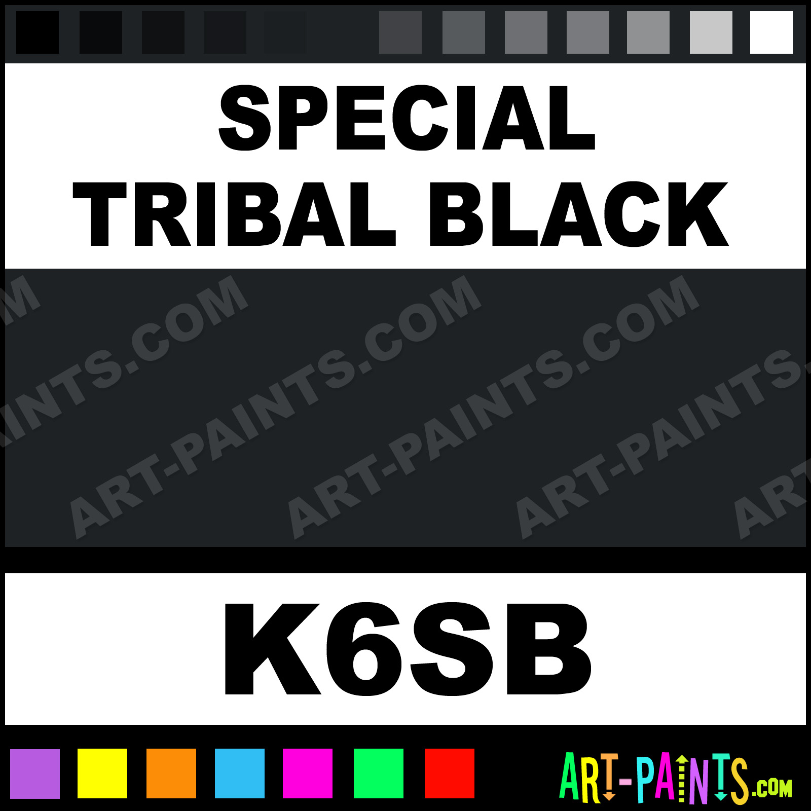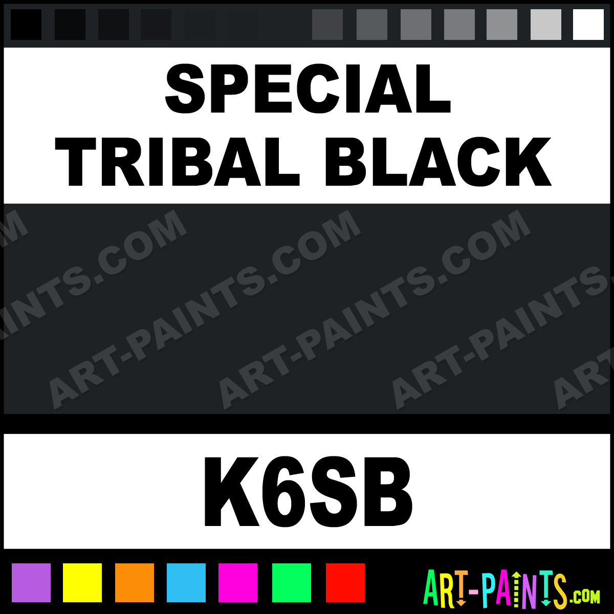 This beautiful Ink Tattoo Ink and Pigment shade is called Special Tribal Black, and comes from a company called Prizm. Their product number, along with the HTML color code, RGB, and CMYK codes are listed below. This Beautiful Shade of Special Tribal Black and others can be found in the Prizm Ink Art Paint Gallery! Also be sure to browse through the other wonderful Professional Ink Color Galleries to see more of Prizm Ink Tattoo Ink Brand Paints and other Pigment Paint Manufacturers. And as always, Paint Paint Paint! -Art-Paints.com