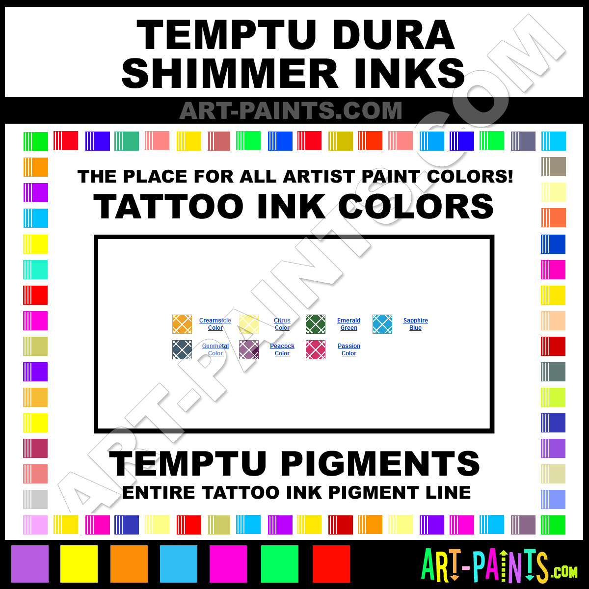 TempTu makes a beautiful Dura Shimmer Paint Brand. With a complete line of Tattoo Ink and Pigment Colors and Paints, 7 colors in all, available in beautiful hues and colors, they will no doubt keep you painting and smiling at the same time. This brand is very unique and exquisite!