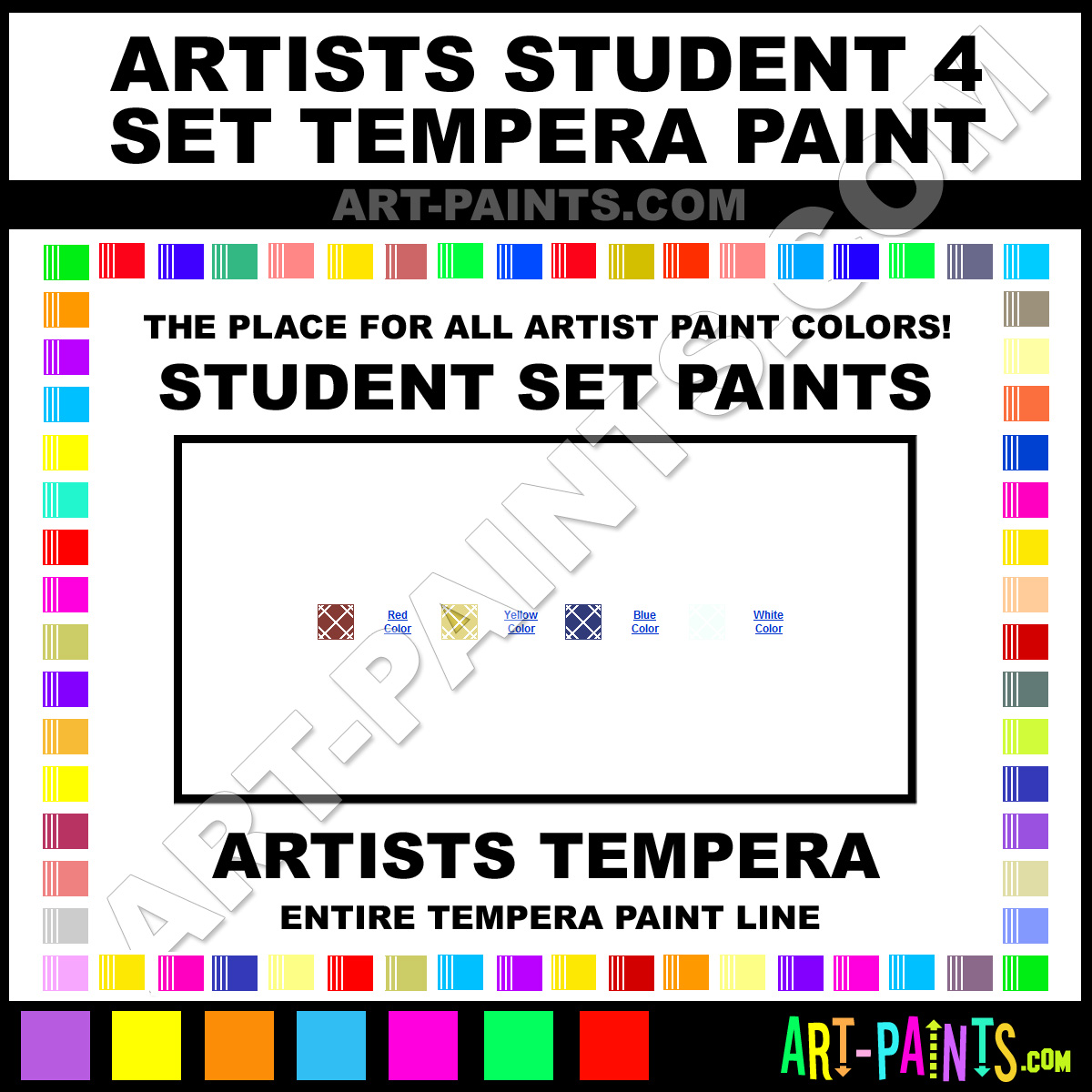 Artists makes a beautiful Student 4 Set Paint Brand. With a complete line of Egg Tempera Color Paints, 4 colors in all, available in beautiful hues and colors, they will no doubt keep you painting and smiling at the same time. This brand is very unique and exquisite!