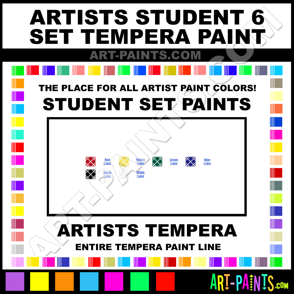 Artists makes a beautiful Student 6 Set Paint Brand. With a complete line of Egg Tempera Color Paints, 6 colors in all, available in beautiful hues and colors, they will no doubt keep you painting and smiling at the same time. This brand is very unique and exquisite!