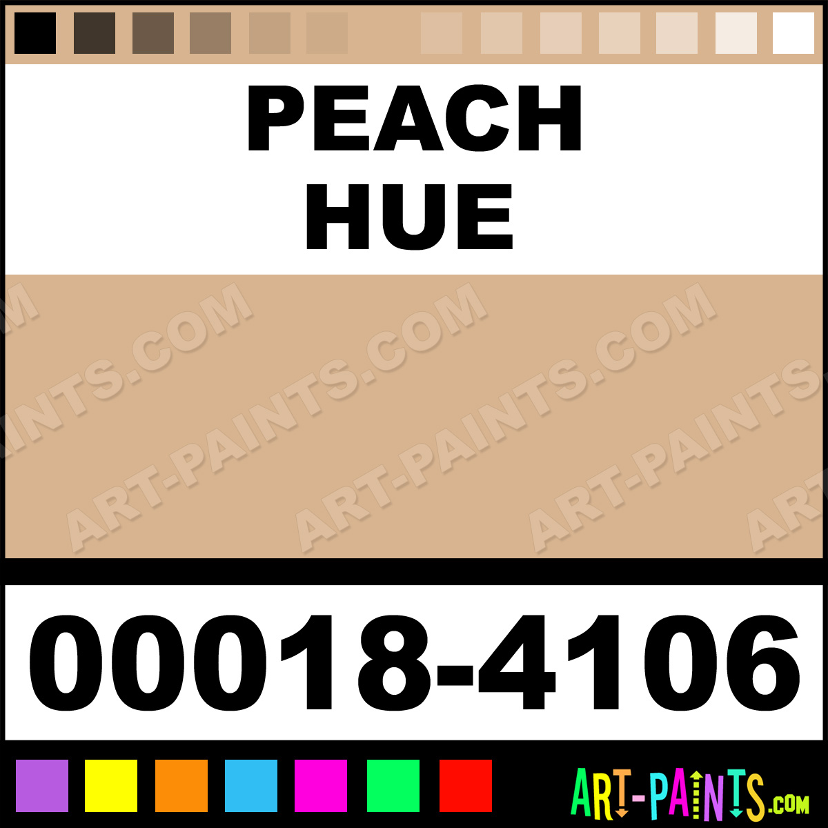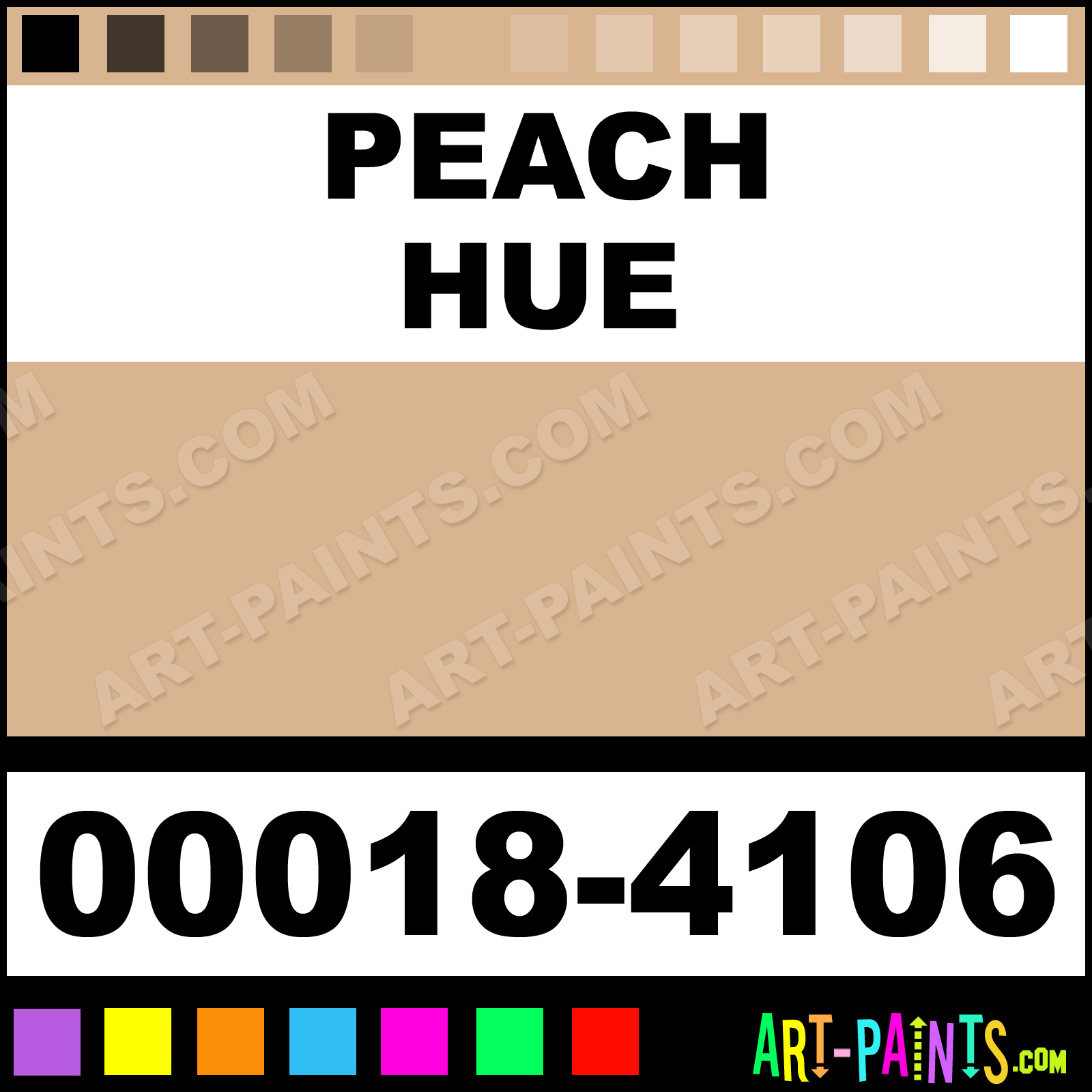 This beautiful Student Egg Tempera shade is called Peach, and comes from a company called Artists. Their product number, along with the HTML color code, RGB, and CMYK codes are listed below. This Beautiful Shade of Peach and others can be found in the Artists Student Art Paint Gallery! Also be sure to browse through the other wonderful Professional Color Galleries to see more of Artists Student Egg Tempera Brand Paints and other Paint Manufacturers. And as always, Paint Paint Paint! -Art-Paints.com