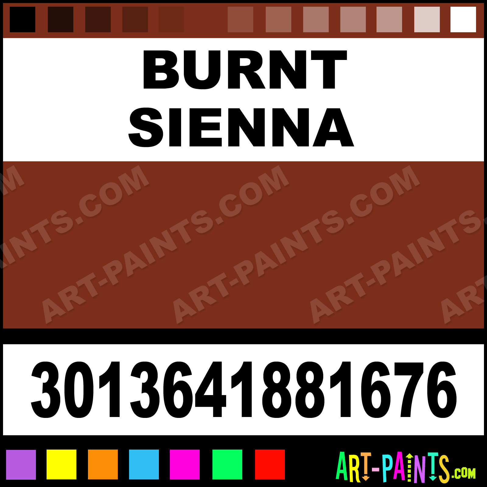 This beautiful Over Sized Discs Egg Tempera shade is called Burnt Sienna, and comes from a company called Color and Co. Their product number, along with the HTML color code, RGB, and CMYK codes are listed below. This Beautiful Shade of Burnt Sienna and others can be found in the Color and Co Over Sized Discs Art Paint Gallery! Also be sure to browse through the other wonderful Professional Color Galleries to see more of Color and Co Over Sized Discs Egg Tempera Brand Paints and other Paint Manufacturers. And as always, Paint Paint Paint! -Art-Paints.com