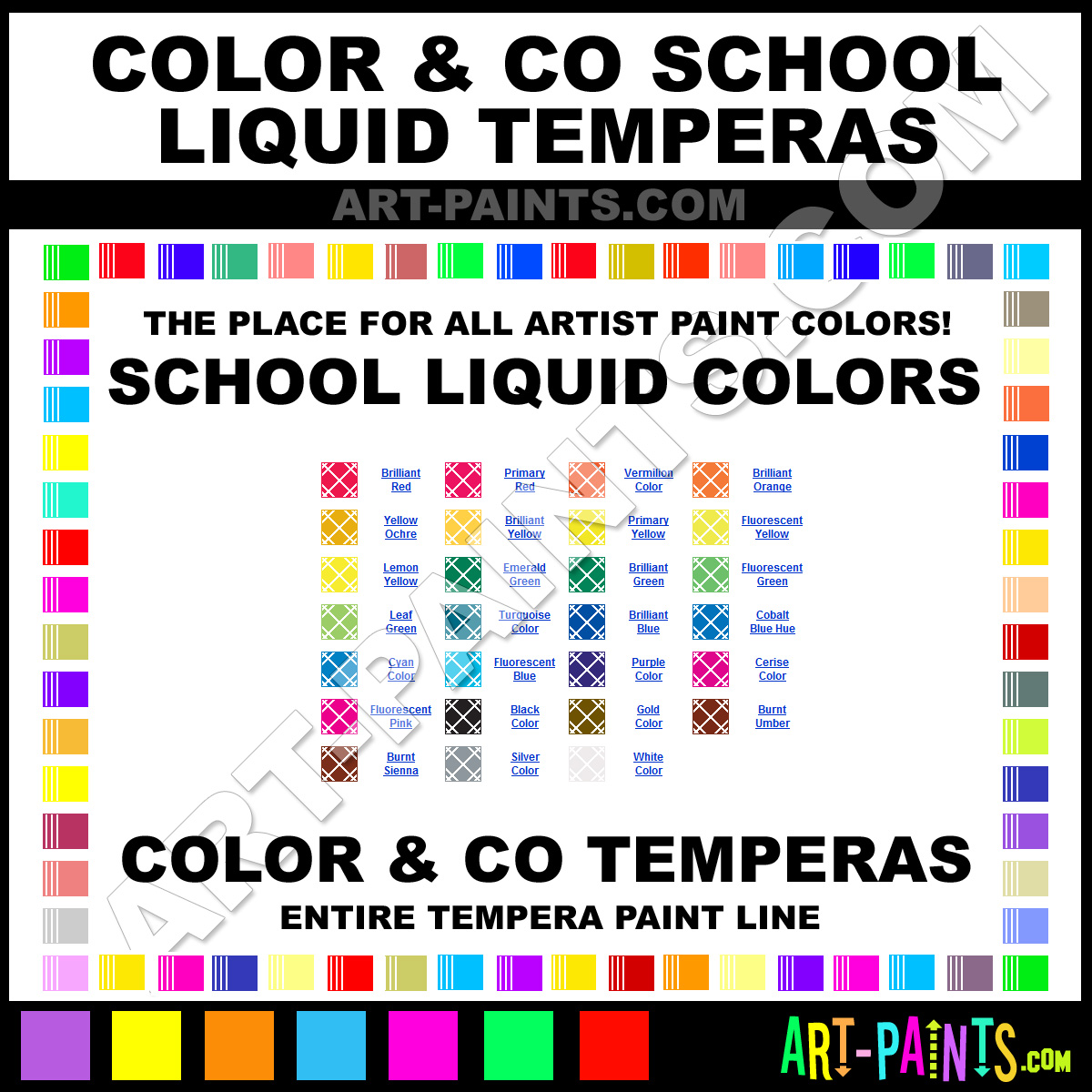 Color and Co knows Egg Tempera paints! They make a wonderful brand of paint called Color and Co School Liquid Egg Tempera Colors that suits all types of artists. They strive to perfect the process of color and are one of the most popular Tempera Paint Brand companies in the world. Enjoy their entire paint brand collection from the list below. Color and Co makes wonderful Artists Paints that everyone is sure to enjoy! Choose an Egg Tempera Paint Color below to view that Hue and all their great related color paints. Paint on!     -Art-Paints.com