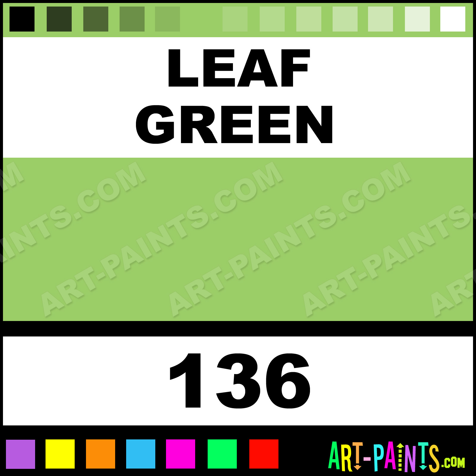 This beautiful School Liquid Egg Tempera shade is called Leaf Green, and comes from a company called Color and Co. Their product number, along with the HTML color code, RGB, and CMYK codes are listed below. This Beautiful Shade of Leaf Green and others can be found in the Color and Co School Liquid Art Paint Gallery! Also be sure to browse through the other wonderful Professional Color Galleries to see more of Color and Co School Liquid Egg Tempera Brand Paints and other Paint Manufacturers. And as always, Paint Paint Paint! -Art-Paints.com