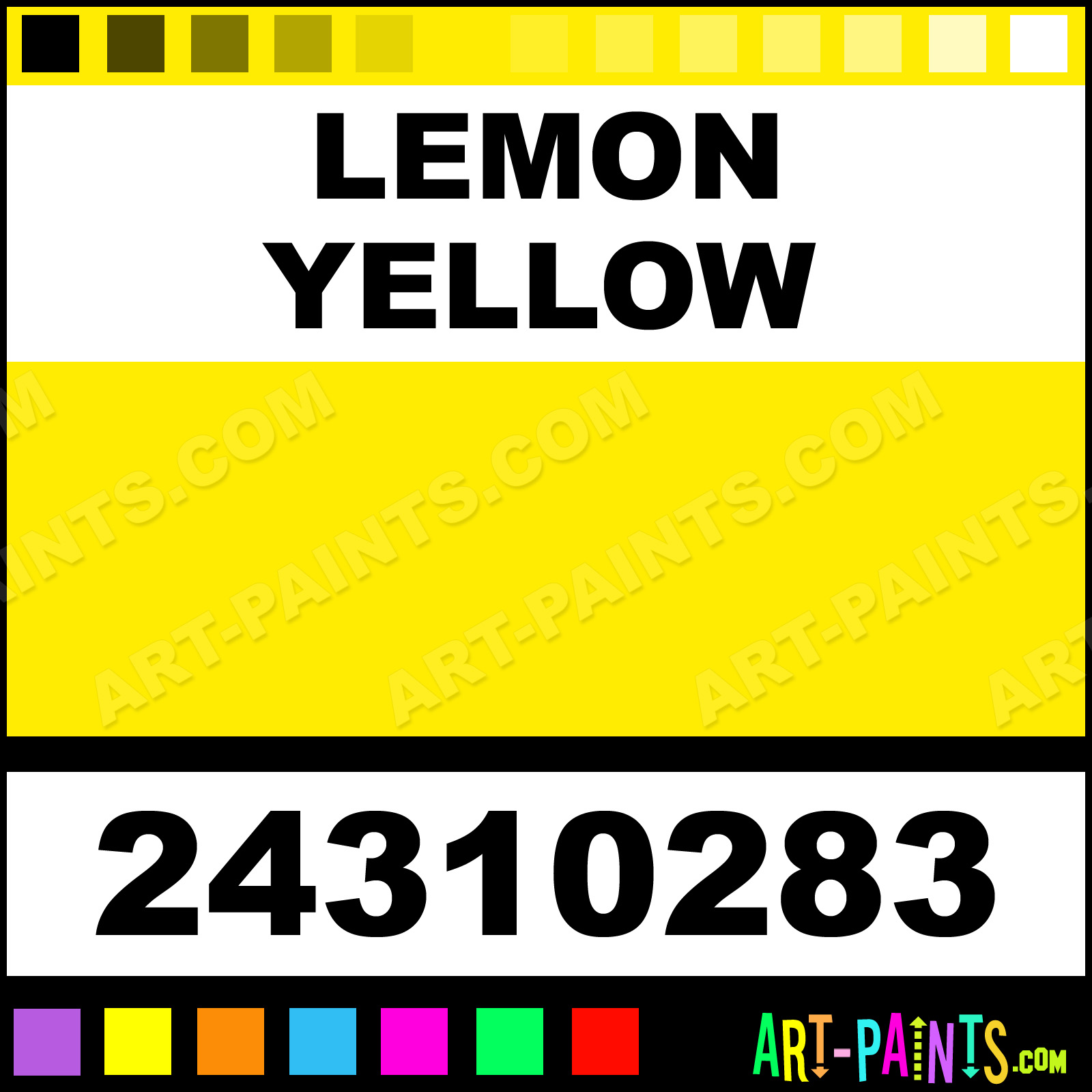 This beautiful School Egg Tempera shade is called Lemon Yellow, and comes from a company called Color and Co. Their product number, along with the HTML color code, RGB, and CMYK codes are listed below. This Beautiful Shade of Lemon Yellow and others can be found in the Color and Co School Art Paint Gallery! Also be sure to browse through the other wonderful Professional Color Galleries to see more of Color and Co School Egg Tempera Brand Paints and other Paint Manufacturers. And as always, Paint Paint Paint! -Art-Paints.com