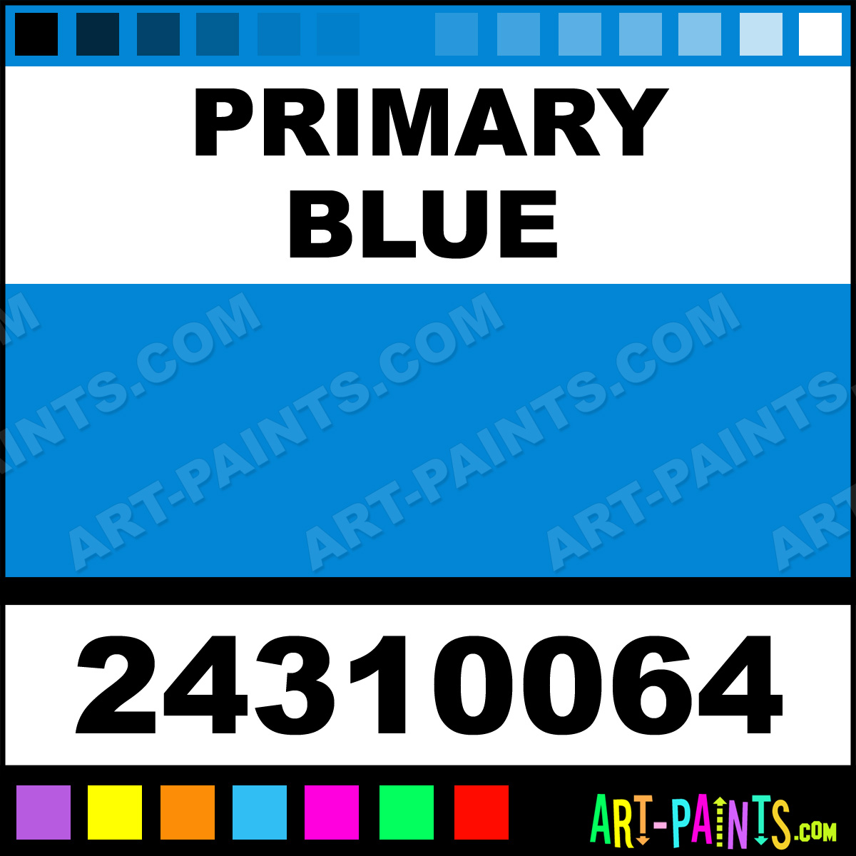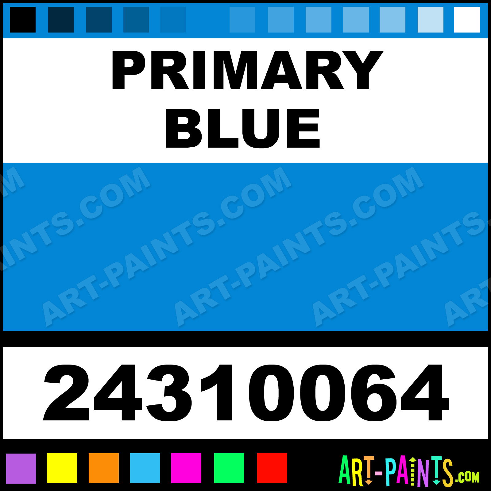 This beautiful School Egg Tempera shade is called Primary Blue, and comes from a company called Color and Co. Their product number, along with the HTML color code, RGB, and CMYK codes are listed below. This Beautiful Shade of Primary Blue and others can be found in the Color and Co School Art Paint Gallery! Also be sure to browse through the other wonderful Professional Color Galleries to see more of Color and Co School Egg Tempera Brand Paints and other Paint Manufacturers. And as always, Paint Paint Paint! -Art-Paints.com
