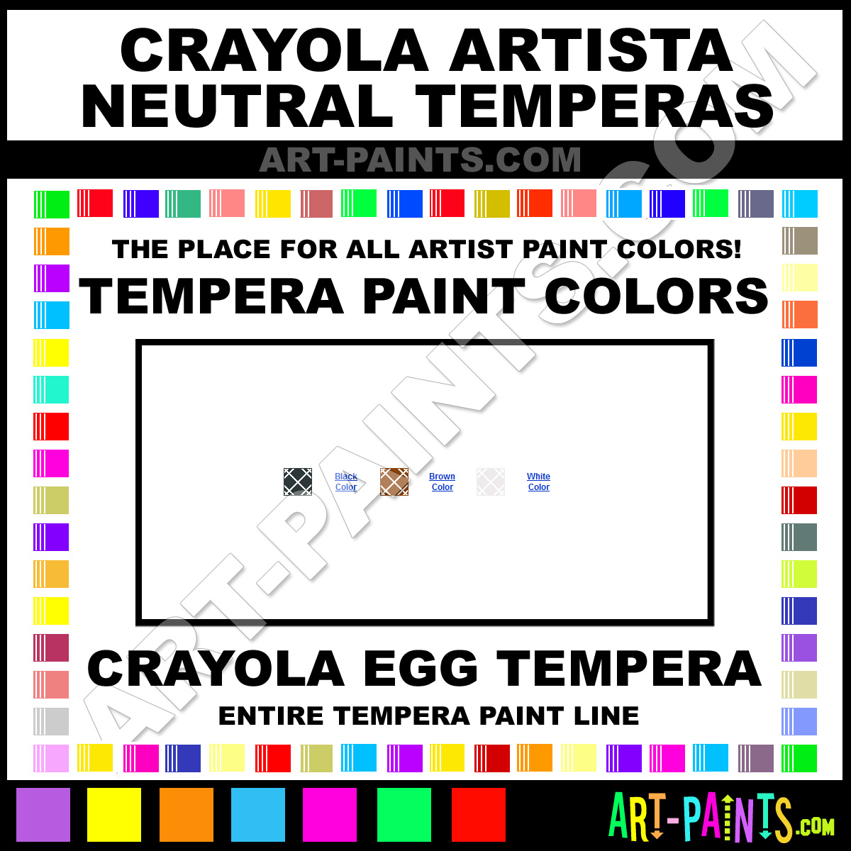 Crayola knows Egg Tempera paints! They make a wonderful brand of paint called Crayola Artista Neutral 3 Set Egg Tempera Colors that suits all types of artists. They strive to perfect the process of color and are one of the most popular Tempera Paint Brand companies in the world. Enjoy their entire paint brand collection from the list below. Crayola makes wonderful Artists Paints that everyone is sure to enjoy! Choose an Egg Tempera Paint Color below to view that Hue and all their great related color paints. Paint on!     -Art-Paints.com