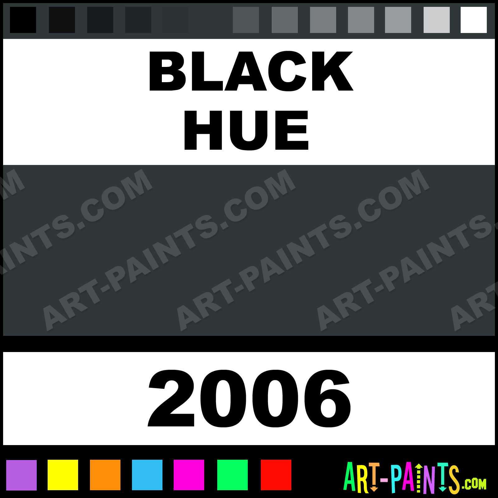 This beautiful Artista Egg Tempera shade is called Black, and comes from a company called Crayola. Their product number, along with the HTML color code, RGB, and CMYK codes are listed below. This Beautiful Shade of Black and others can be found in the Crayola Artista Art Paint Gallery! Also be sure to browse through the other wonderful Professional Color Galleries to see more of Crayola Artista Egg Tempera Brand Paints and other Paint Manufacturers. And as always, Paint Paint Paint! -Art-Paints.com