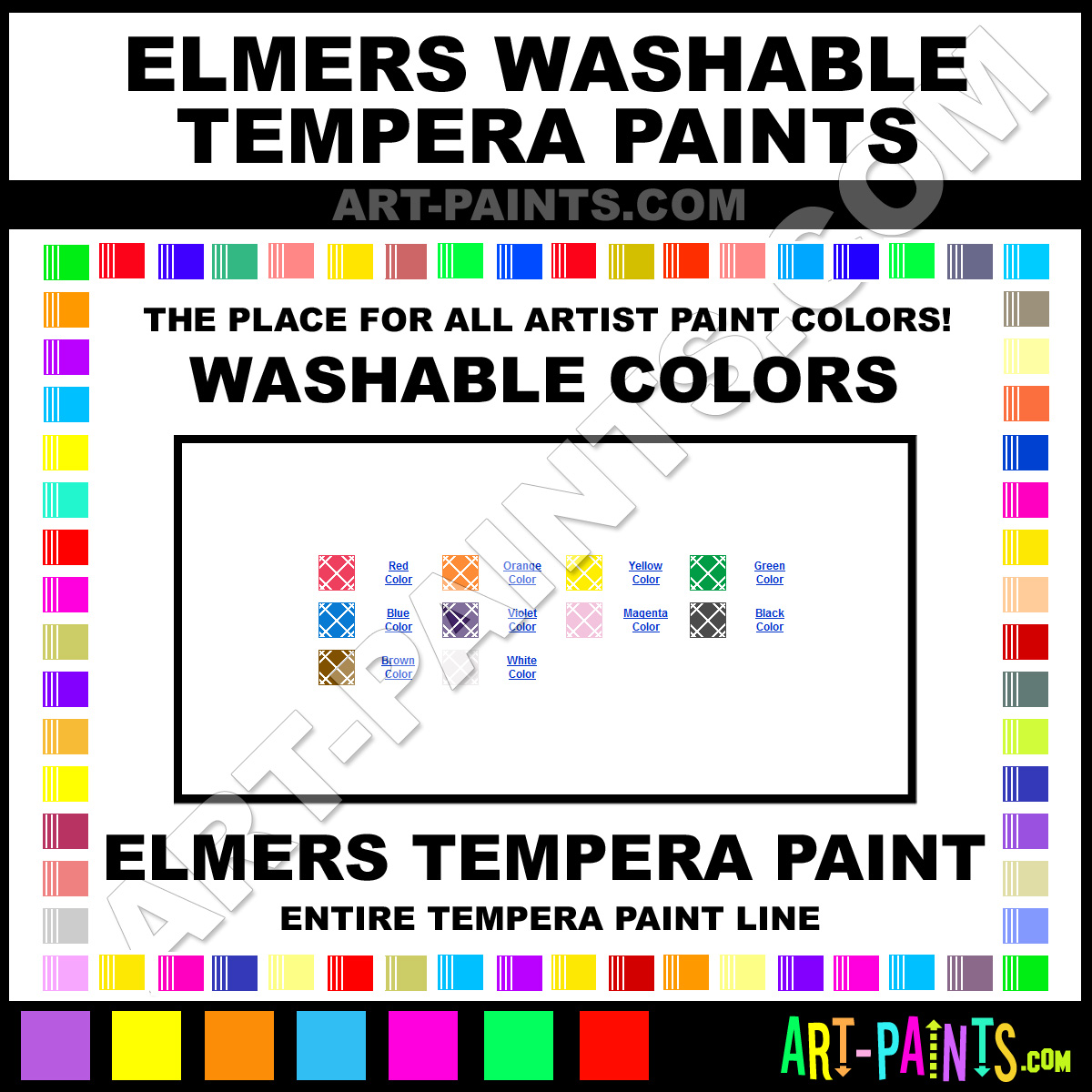 Elmers knows Egg Tempera paints! They make a wonderful brand of paint called Elmers Washable Egg Tempera Colors that suits all types of artists. They strive to perfect the process of color and are one of the most popular Egg Tempera Paint Brand companies in the world. Enjoy their entire paint brand collection from the list below. Elmers makes wonderful Artists Paints that everyone is sure to enjoy! Choose an Tempera Paint Color below to view that Hue and all their great related color paints. Paint on!     -Art-Paints.com