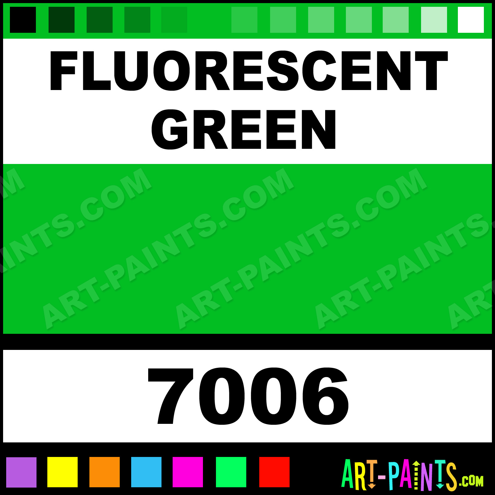 This beautiful Colors Egg Tempera shade is called Fluorescent Green, and comes from a company called Jazz Gloss. Their product number, along with the HTML color code, RGB, and CMYK codes are listed below. This Beautiful Shade of Fluorescent Green and others can be found in the Jazz Gloss Colors Art Paint Gallery! Also be sure to browse through the other wonderful Professional Color Galleries to see more of Jazz Gloss Colors Egg Tempera Brand Paints and other Paint Manufacturers. And as always, Paint Paint Paint! -Art-Paints.com