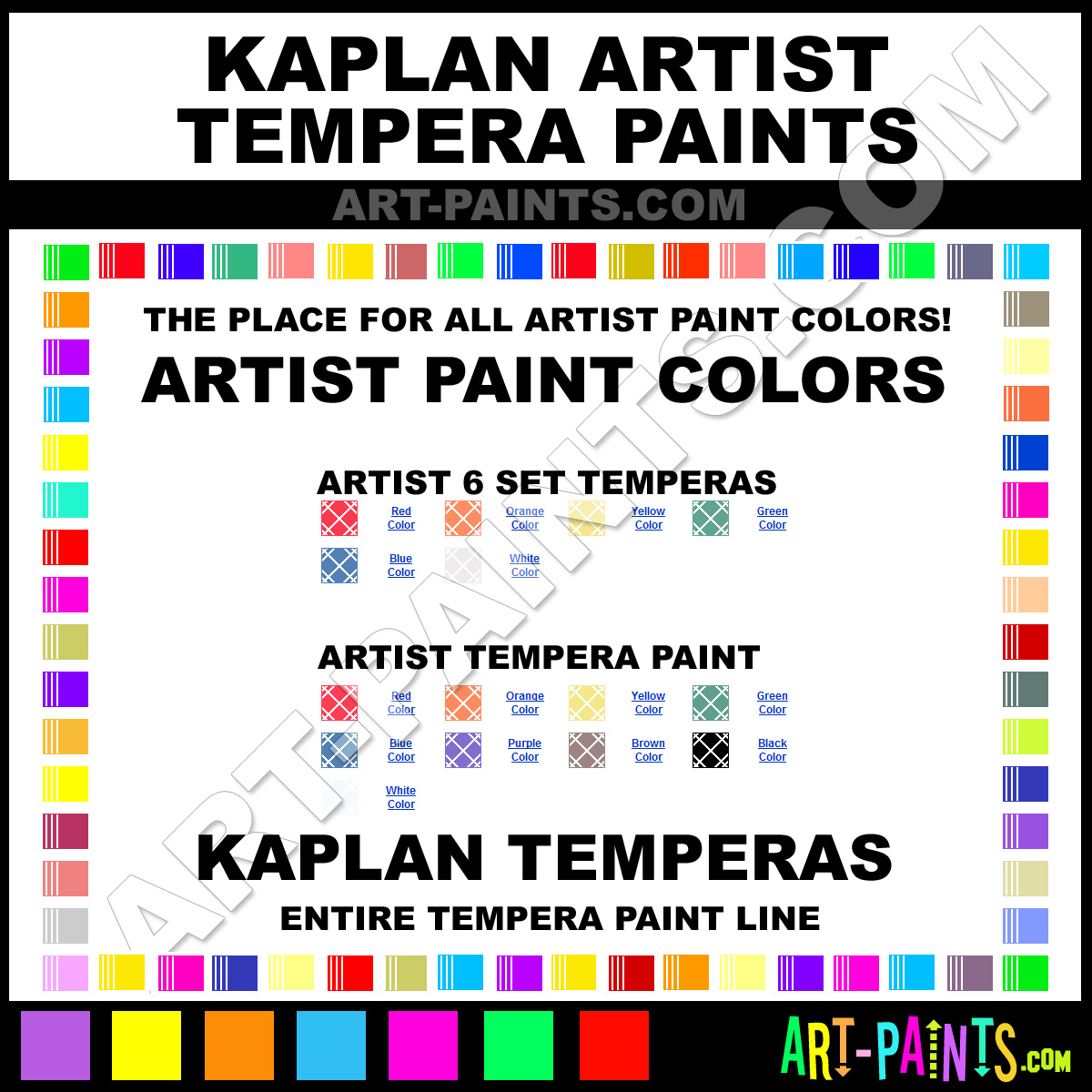 Kaplan makes beautiful Tempera Paint brands. With a complete line of Artist and Artist 6 Set Egg Tempera Lines, and 15 colors in all, available in just about every hue and color, they will no doubt keep you painting and smiling at the same time. Each Brand is unique and the variety of paints is exquisite!