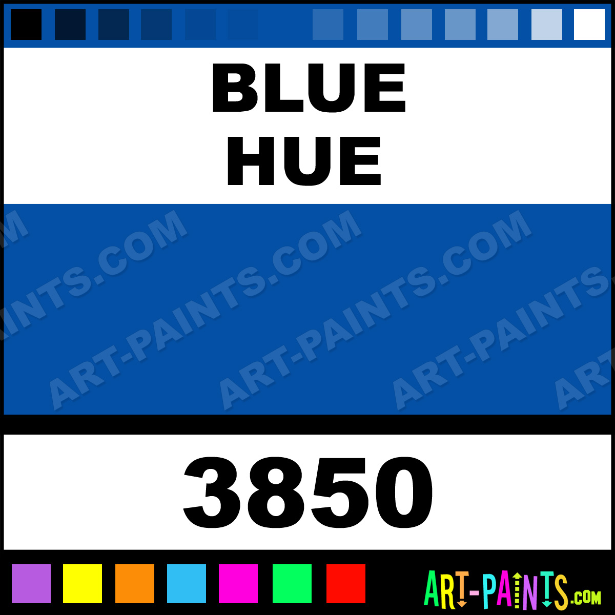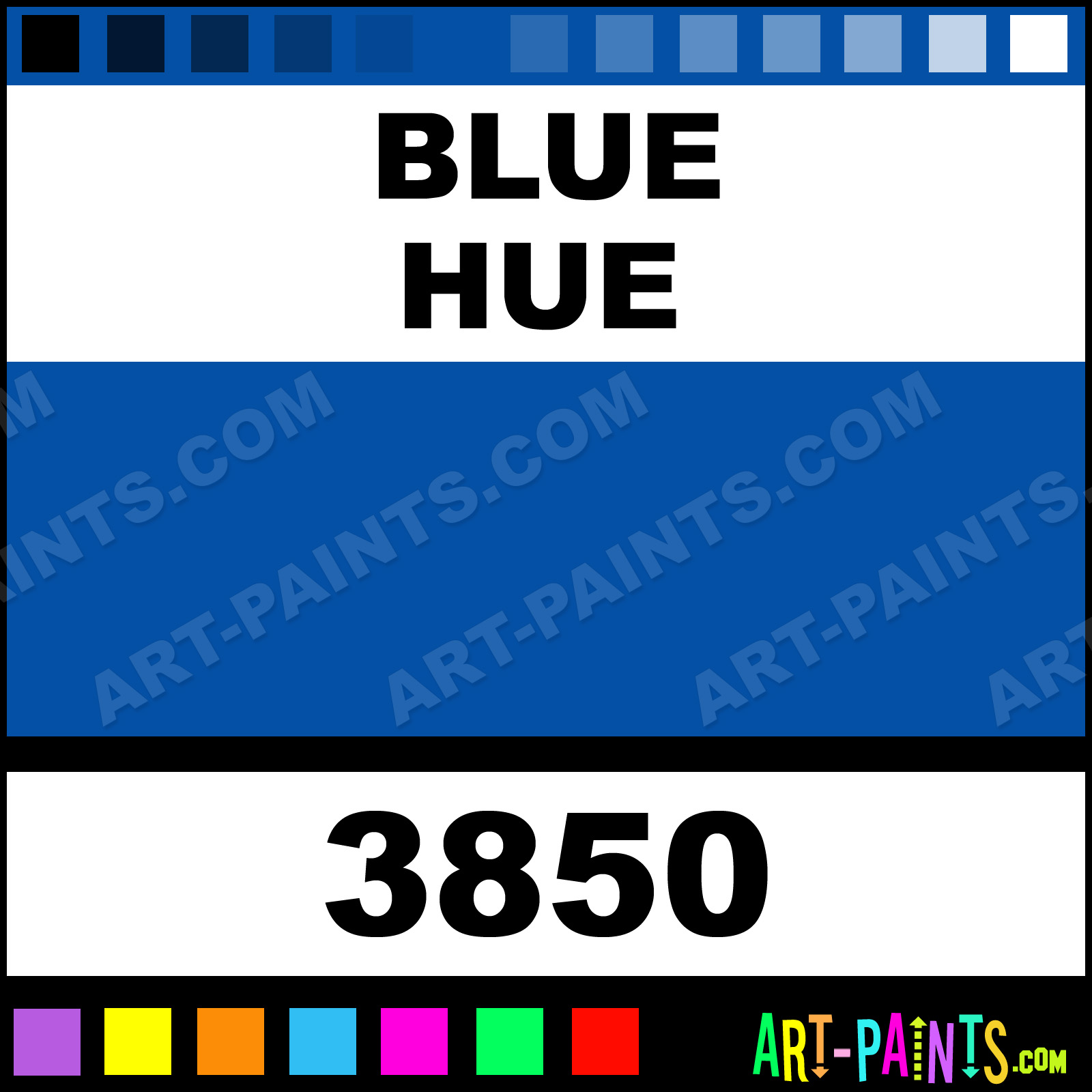 This beautiful Fluorescent Egg Tempera shade is called Blue, and comes from a company called Sargent Art. Their product number, along with the HTML color code, RGB, and CMYK codes are listed below. This Beautiful Shade of Blue and others can be found in the Sargent Art Fluorescent Art Paint Gallery! Also be sure to browse through the other wonderful Professional Color Galleries to see more of Sargent Art Fluorescent Egg Tempera Brand Paints and other Paint Manufacturers. And as always, Paint Paint Paint! -Art-Paints.com