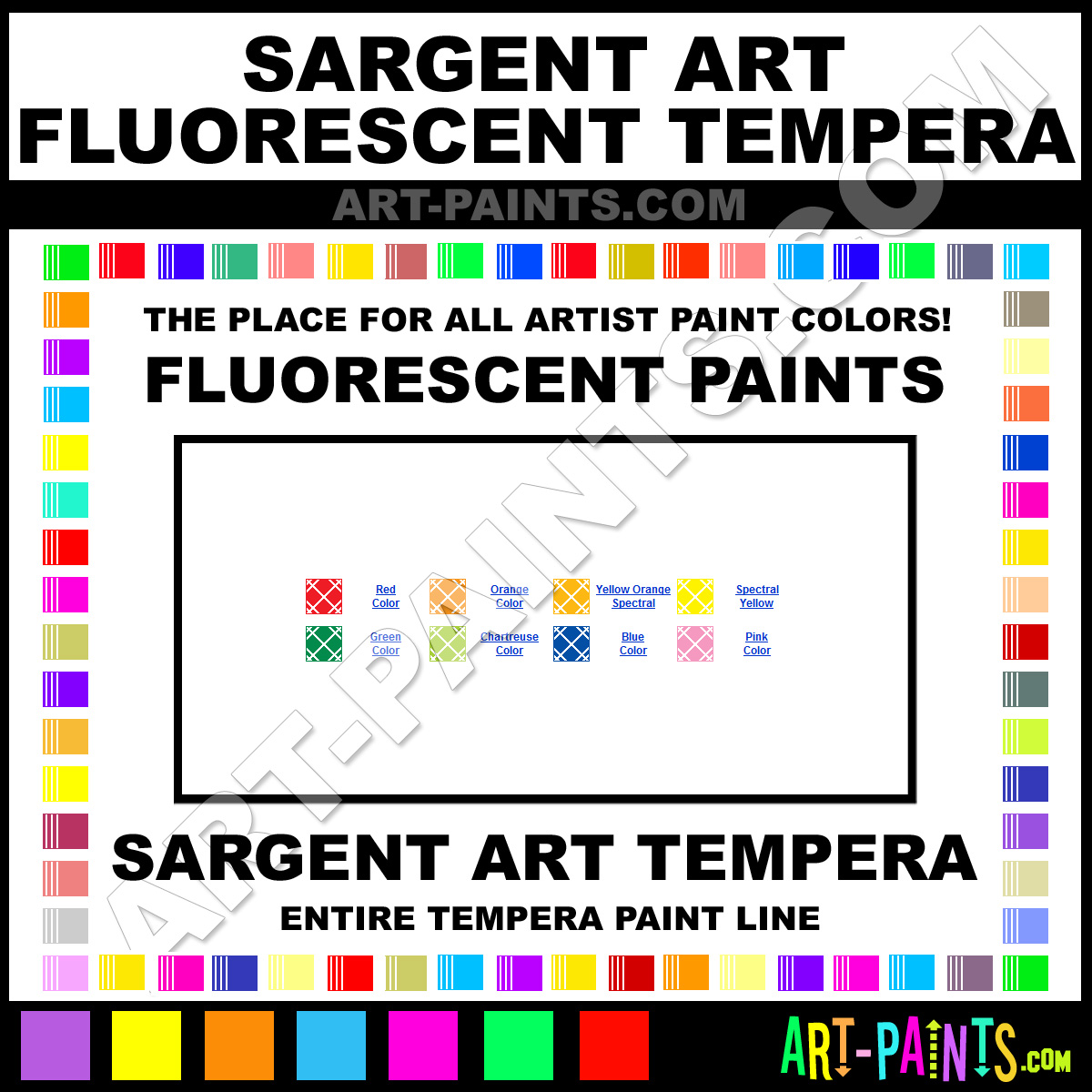 Sargent Art makes a beautiful Fluorescent Paint Brand. With a complete line of Egg Tempera Color Paints, 8 colors in all, available in beautiful hues and colors, they will no doubt keep you painting and smiling at the same time. This brand is very unique and exquisite!