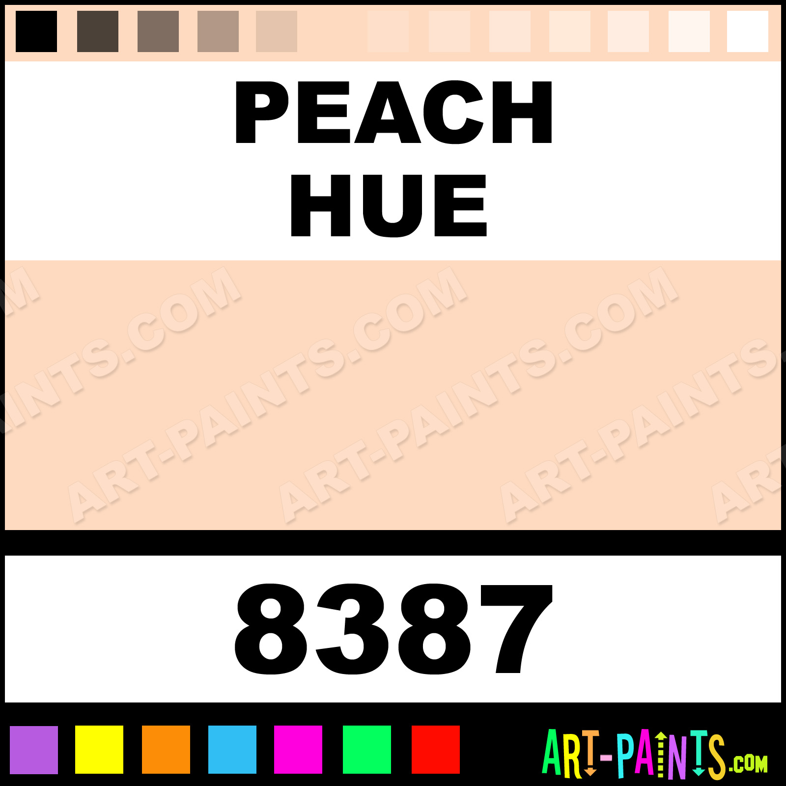This beautiful Valutemp Egg Tempera shade is called Peach, and comes from a company called Sargent Art. Their product number, along with the HTML color code, RGB, and CMYK codes are listed below. This Beautiful Shade of Peach and others can be found in the Sargent Art Valutemp Art Paint Gallery! Also be sure to browse through the other wonderful Professional Color Galleries to see more of Sargent Art Valutemp Egg Tempera Brand Paints and other Paint Manufacturers. And as always, Paint Paint Paint! -Art-Paints.com
