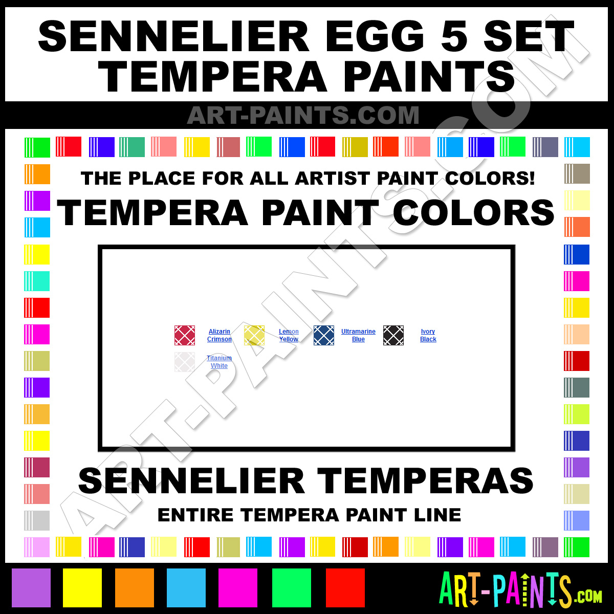Sennelier makes a beautiful Egg 5 Set Paint Brand. With a complete line of Egg Tempera Color Paints, 5 colors in all, available in beautiful hues and colors, they will no doubt keep you painting and smiling at the same time. This brand is very unique and exquisite!