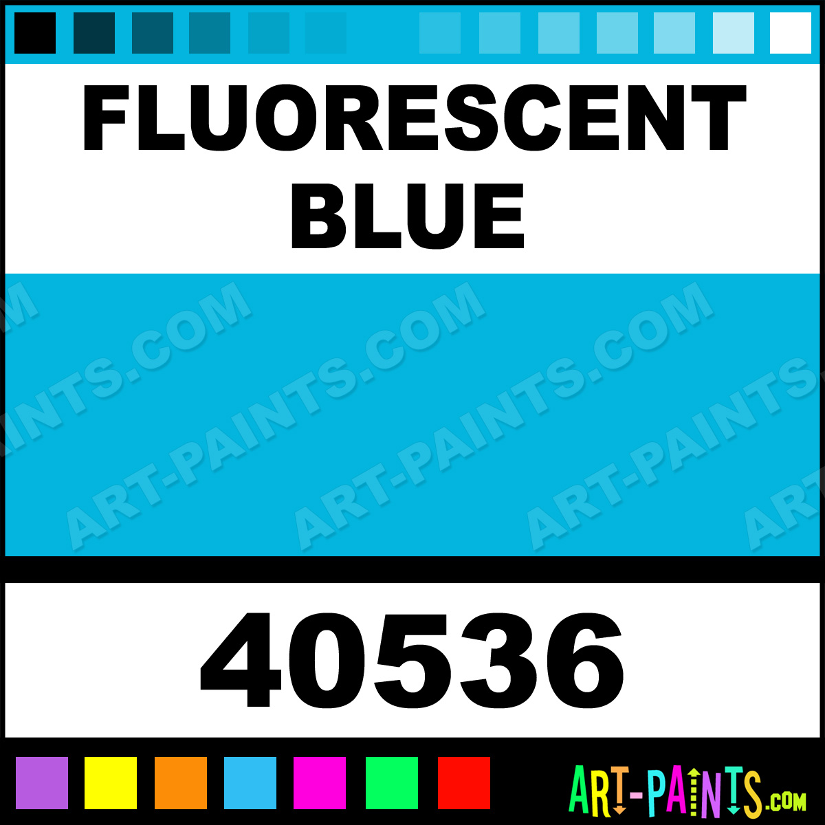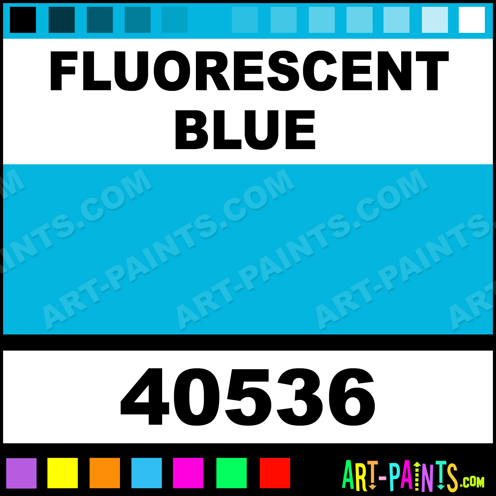 This beautiful Jazz Matte Egg Tempera shade is called Fluorescent Blue, and comes from a company called Vanaken. Their product number, along with the HTML color code, RGB, and CMYK codes are listed below. This Beautiful Shade of Fluorescent Blue and others can be found in the Vanaken Jazz Matte Art Paint Gallery! Also be sure to browse through the other wonderful Professional Color Galleries to see more of Vanaken Jazz Matte Egg Tempera Brand Paints and other Paint Manufacturers. And as always, Paint Paint Paint! -Art-Paints.com