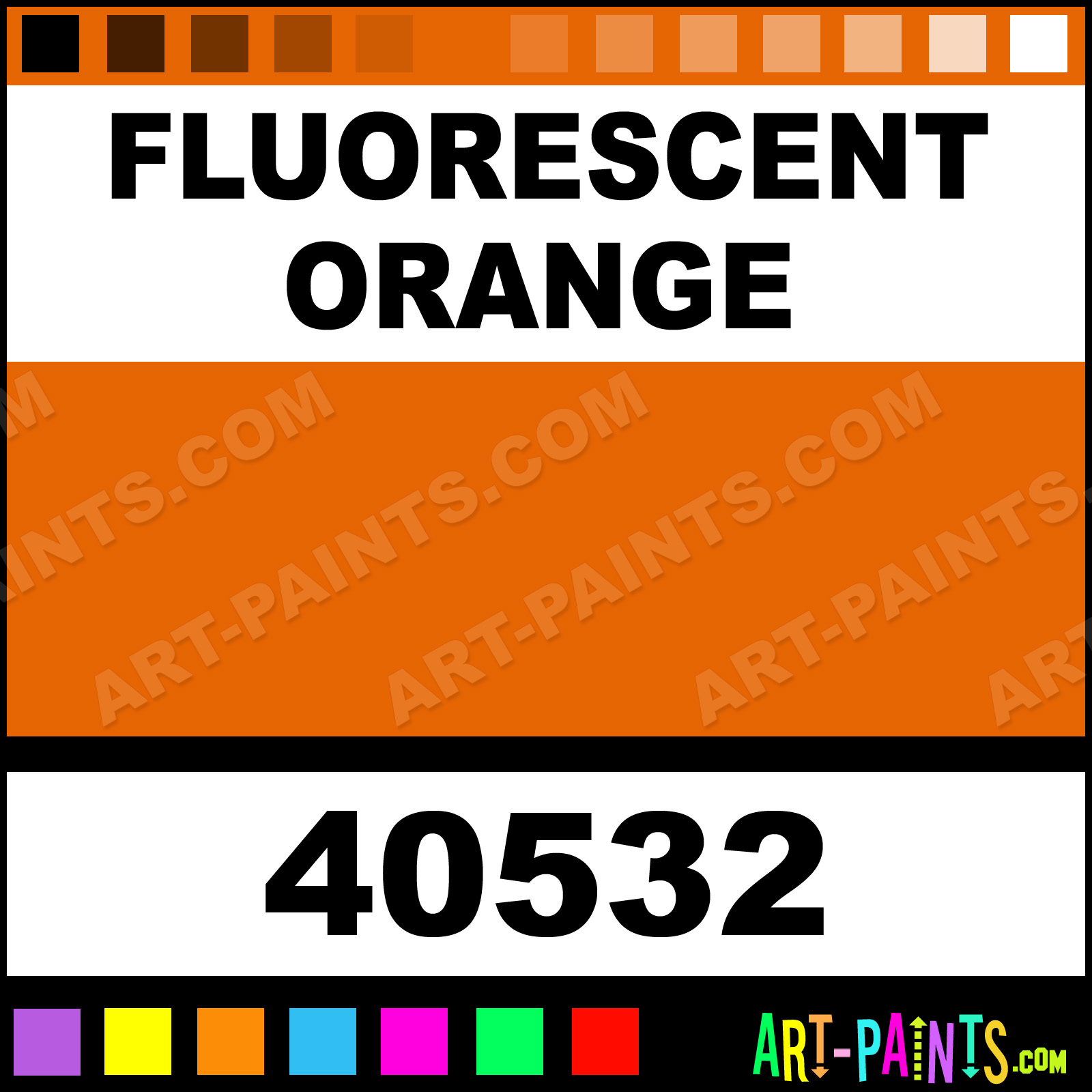 This beautiful Jazz Matte Egg Tempera shade is called Fluorescent Orange, and comes from a company called Vanaken. Their product number, along with the HTML color code, RGB, and CMYK codes are listed below. This Beautiful Shade of Fluorescent Orange and others can be found in the Vanaken Jazz Matte Art Paint Gallery! Also be sure to browse through the other wonderful Professional Color Galleries to see more of Vanaken Jazz Matte Egg Tempera Brand Paints and other Paint Manufacturers. And as always, Paint Paint Paint! -Art-Paints.com