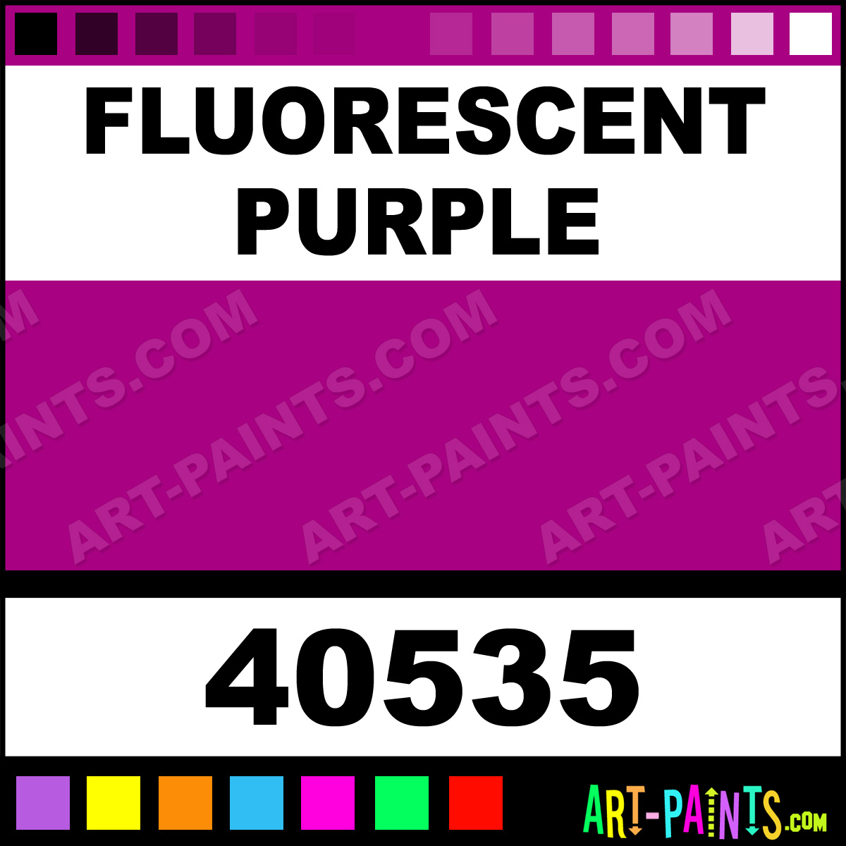 This beautiful Jazz Matte Egg Tempera shade is called Fluorescent Purple, and comes from a company called Vanaken. Their product number, along with the HTML color code, RGB, and CMYK codes are listed below. This Beautiful Shade of Fluorescent Purple and others can be found in the Vanaken Jazz Matte Art Paint Gallery! Also be sure to browse through the other wonderful Professional Color Galleries to see more of Vanaken Jazz Matte Egg Tempera Brand Paints and other Paint Manufacturers. And as always, Paint Paint Paint! -Art-Paints.com