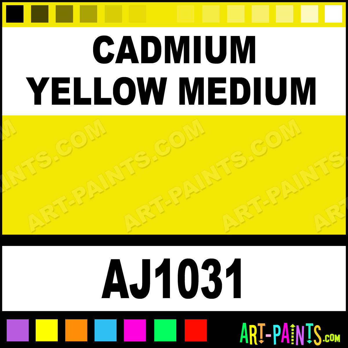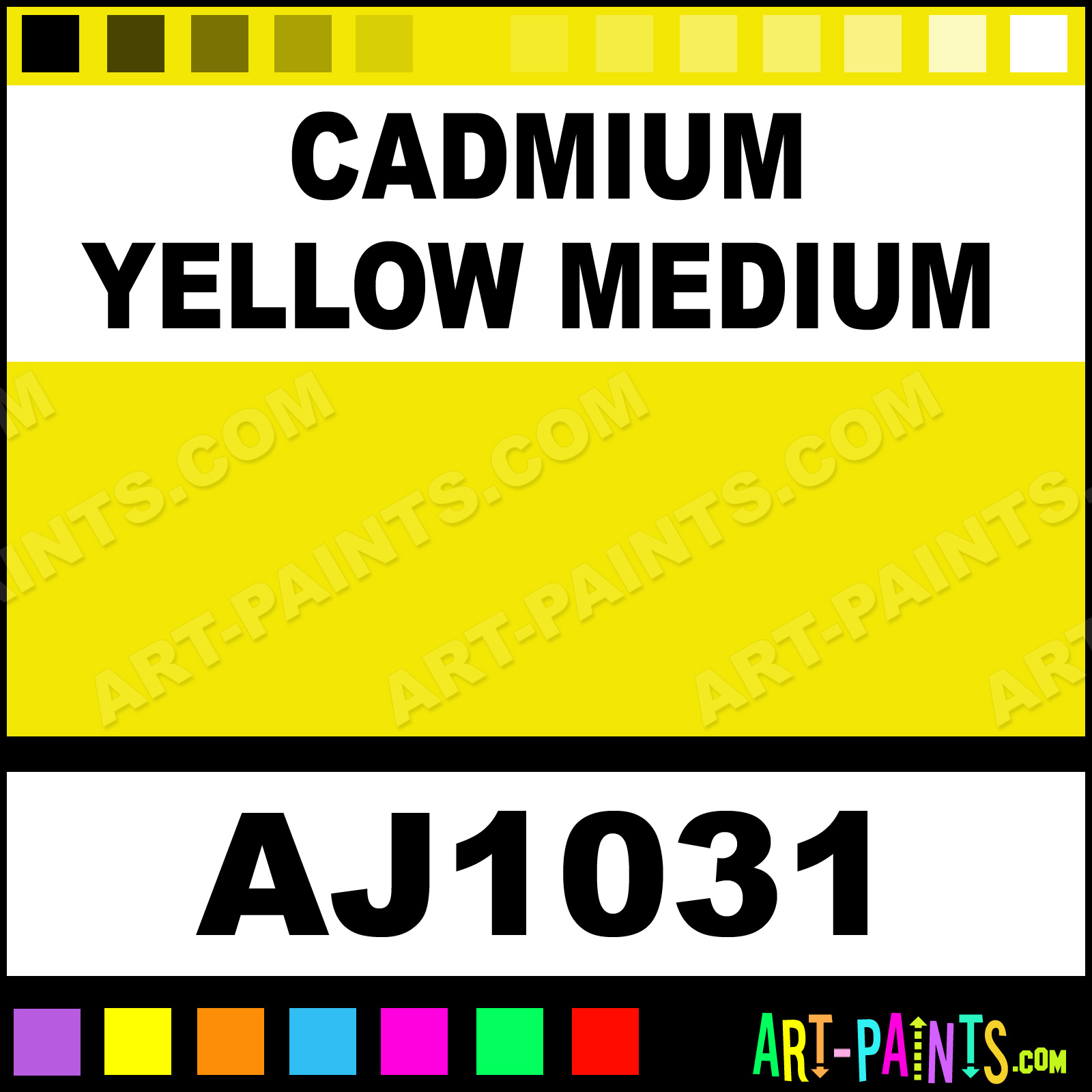 This beautiful Professional Watercolor shade is called Cadmium Yellow Medium, and comes from a company called American Journey. Their product number, along with the HTML color code, RGB, and CMYK codes are listed below. This Beautiful Shade of Cadmium Yellow Medium and others can be found in the American Journey Professional Art Paint Gallery! Also be sure to browse through the other wonderful Professional Color Galleries to see more of American Journey Professional Watercolor Brand Paints and other Paint Manufacturers. And as always, Paint Paint Paint! -Art-Paints.com