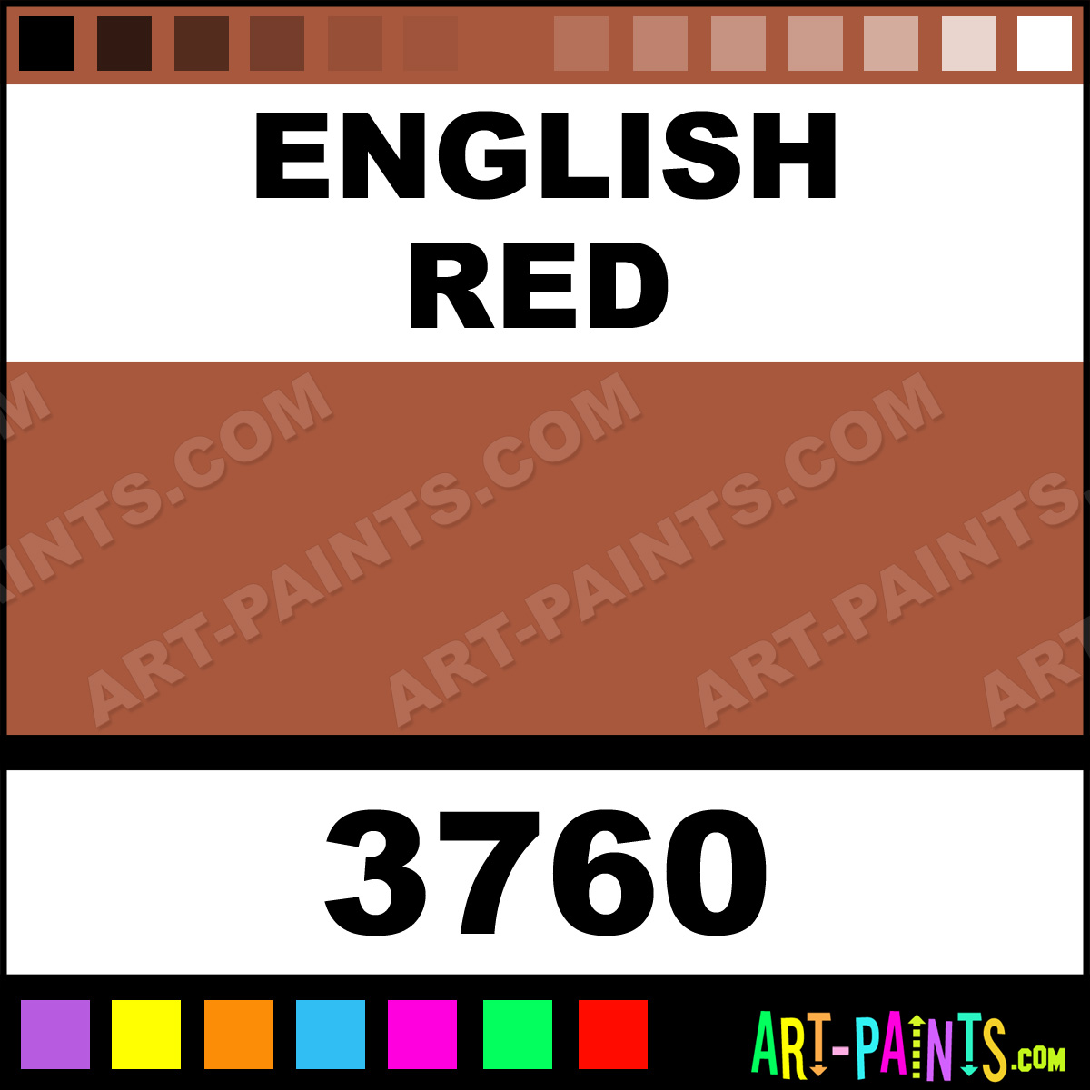 This beautiful Colors Watercolor shade is called English Red, and comes from a company called Artists. Their product number, along with the HTML color code, RGB, and CMYK codes are listed below. This Beautiful Shade of English Red and others can be found in the Artists Colors Art Paint Gallery! Also be sure to browse through the other wonderful Professional Color Galleries to see more of Artists Colors Watercolor Brand Paints and other Paint Manufacturers. And as always, Paint Paint Paint! -Art-Paints.com