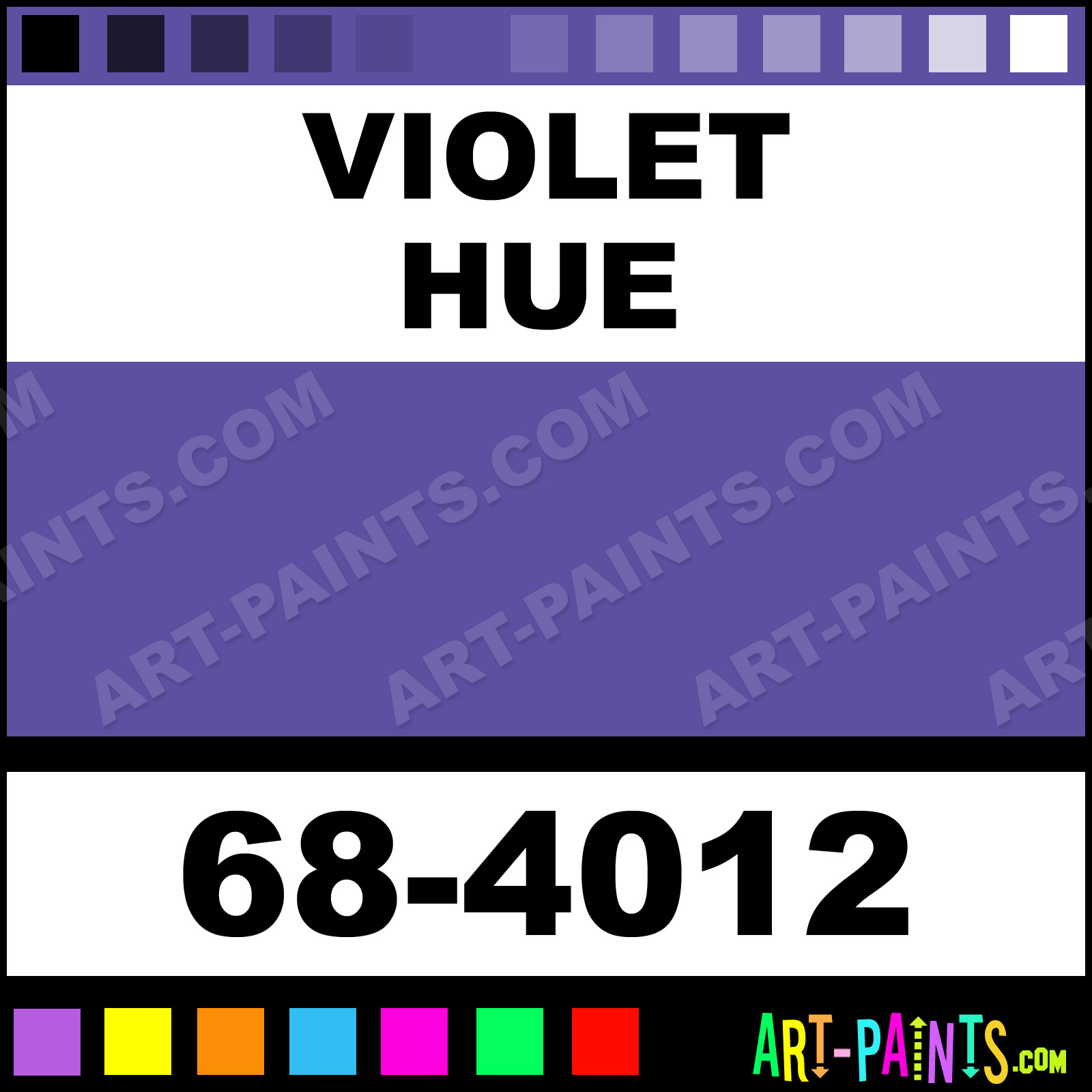 This beautiful Crayola 12 Set Watercolor shade is called Violet, and comes from a company called Binney and Smith. Their product number, along with the HTML color code, RGB, and CMYK codes are listed below. This Beautiful Shade of Violet and others can be found in the Binney and Smith Crayola 12 Set Art Paint Gallery! Also be sure to browse through the other wonderful Professional Color Galleries to see more of Binney and Smith Crayola 12 Set Watercolor Brand Paints and other Paint Manufacturers. And as always, Paint Paint Paint! -Art-Paints.com