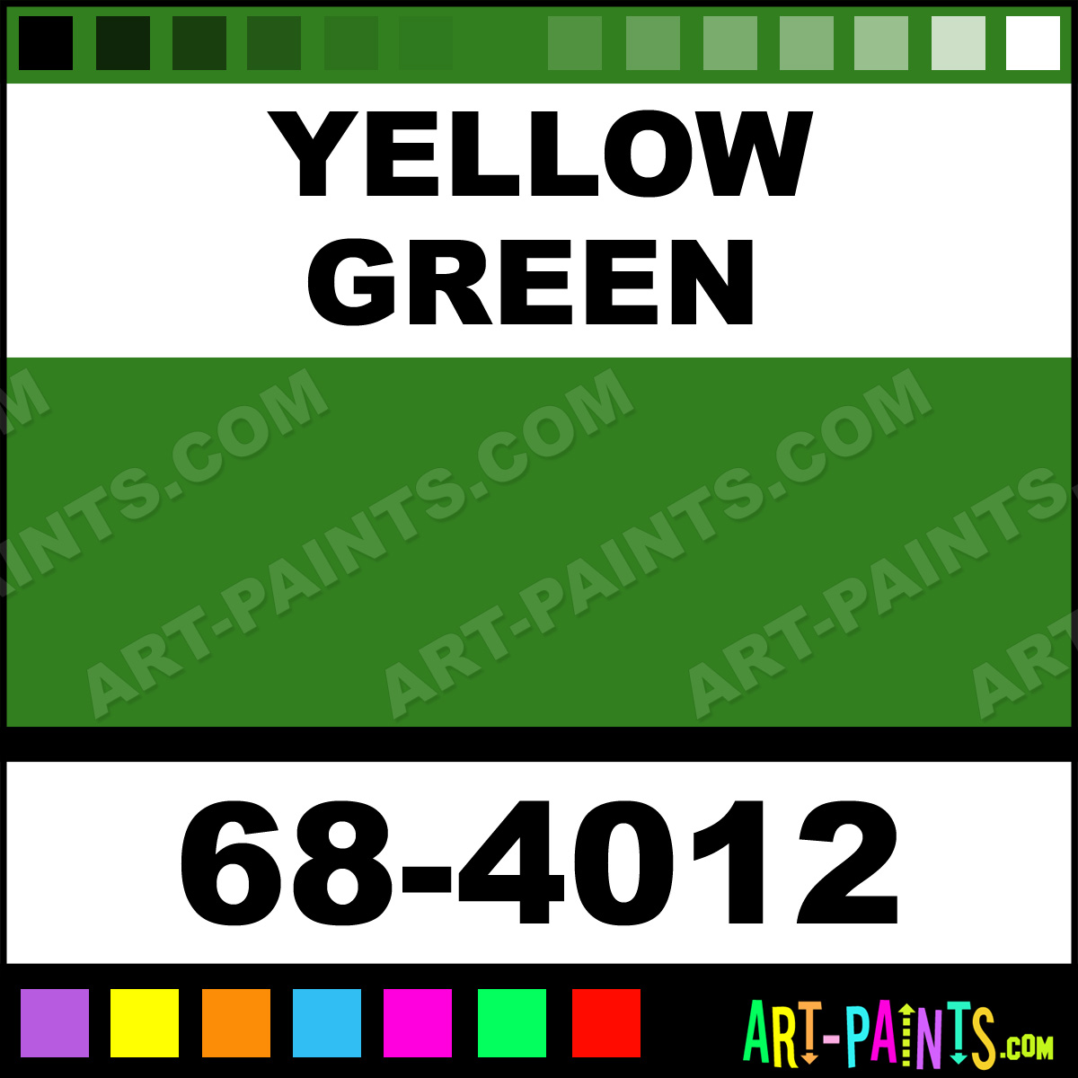 This beautiful Crayola 12 Set Watercolor shade is called Yellow Green, and comes from a company called Binney and Smith. Their product number, along with the HTML color code, RGB, and CMYK codes are listed below. This Beautiful Shade of Yellow Green and others can be found in the Binney and Smith Crayola 12 Set Art Paint Gallery! Also be sure to browse through the other wonderful Professional Color Galleries to see more of Binney and Smith Crayola 12 Set Watercolor Brand Paints and other Paint Manufacturers. And as always, Paint Paint Paint! -Art-Paints.com