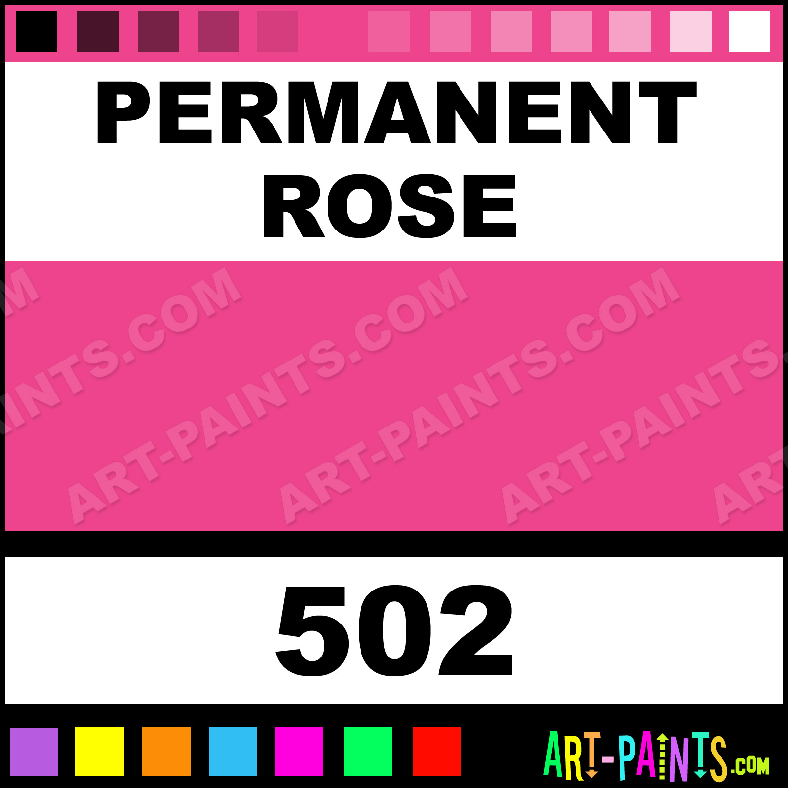 This beautiful Artist Watercolor shade is called Permanent Rose, and comes from a company called Cotman. Their product number, along with the HTML color code, RGB, and CMYK codes are listed below. This Beautiful Shade of Permanent Rose and others can be found in the Cotman Artist Art Paint Gallery! Also be sure to browse through the other wonderful Professional Color Galleries to see more of Cotman Artist Watercolor Brand Paints and other Paint Manufacturers. And as always, Paint Paint Paint! -Art-Paints.com
