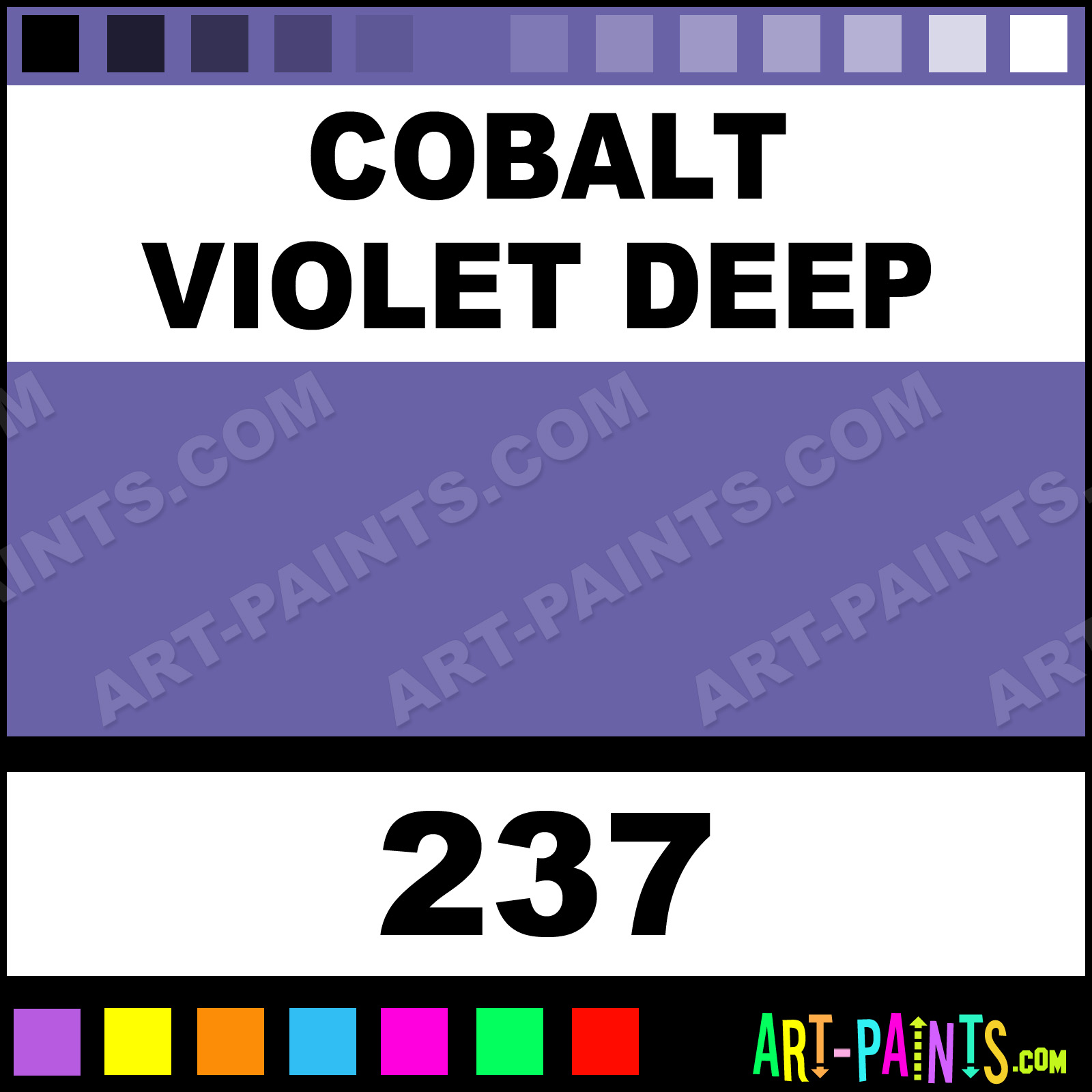 This beautiful Artists Watercolor shade is called Cobalt Violet Deep, and comes from a company called Da Vinci. Their product number, along with the HTML color code, RGB, and CMYK codes are listed below. This Beautiful Shade of Cobalt Violet Deep and others can be found in the Da Vinci Artists Art Paint Gallery! Also be sure to browse through the other wonderful Professional Color Galleries to see more of Da Vinci Artists Watercolor Brand Paints and other Paint Manufacturers. And as always, Paint Paint Paint! -Art-Paints.com
