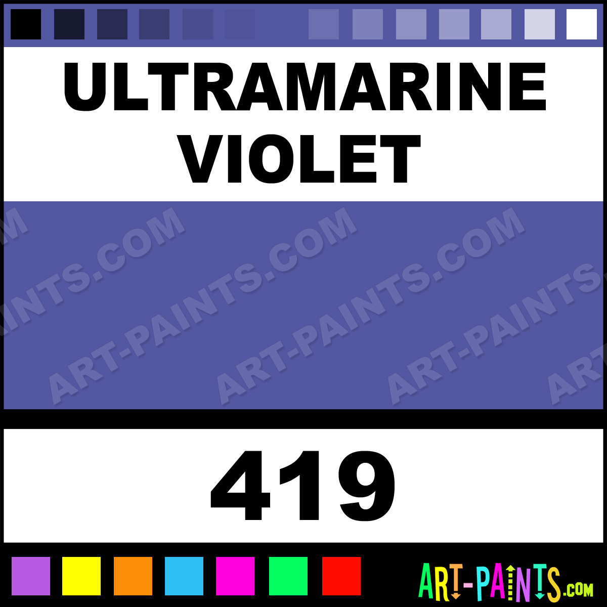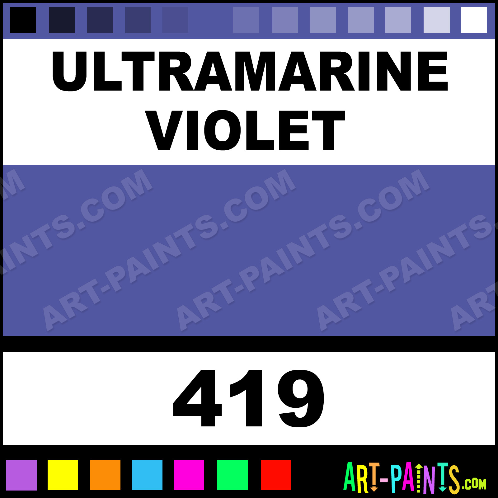 This beautiful Artists Watercolor shade is called Ultramarine Violet, and comes from a company called Daler Rowney. Their product number, along with the HTML color code, RGB, and CMYK codes are listed below. This Beautiful Shade of Ultramarine Violet and others can be found in the Daler Rowney Artists Art Paint Gallery! Also be sure to browse through the other wonderful Professional Color Galleries to see more of Daler Rowney Artists Watercolor Brand Paints and other Paint Manufacturers. And as always, Paint Paint Paint! -Art-Paints.com