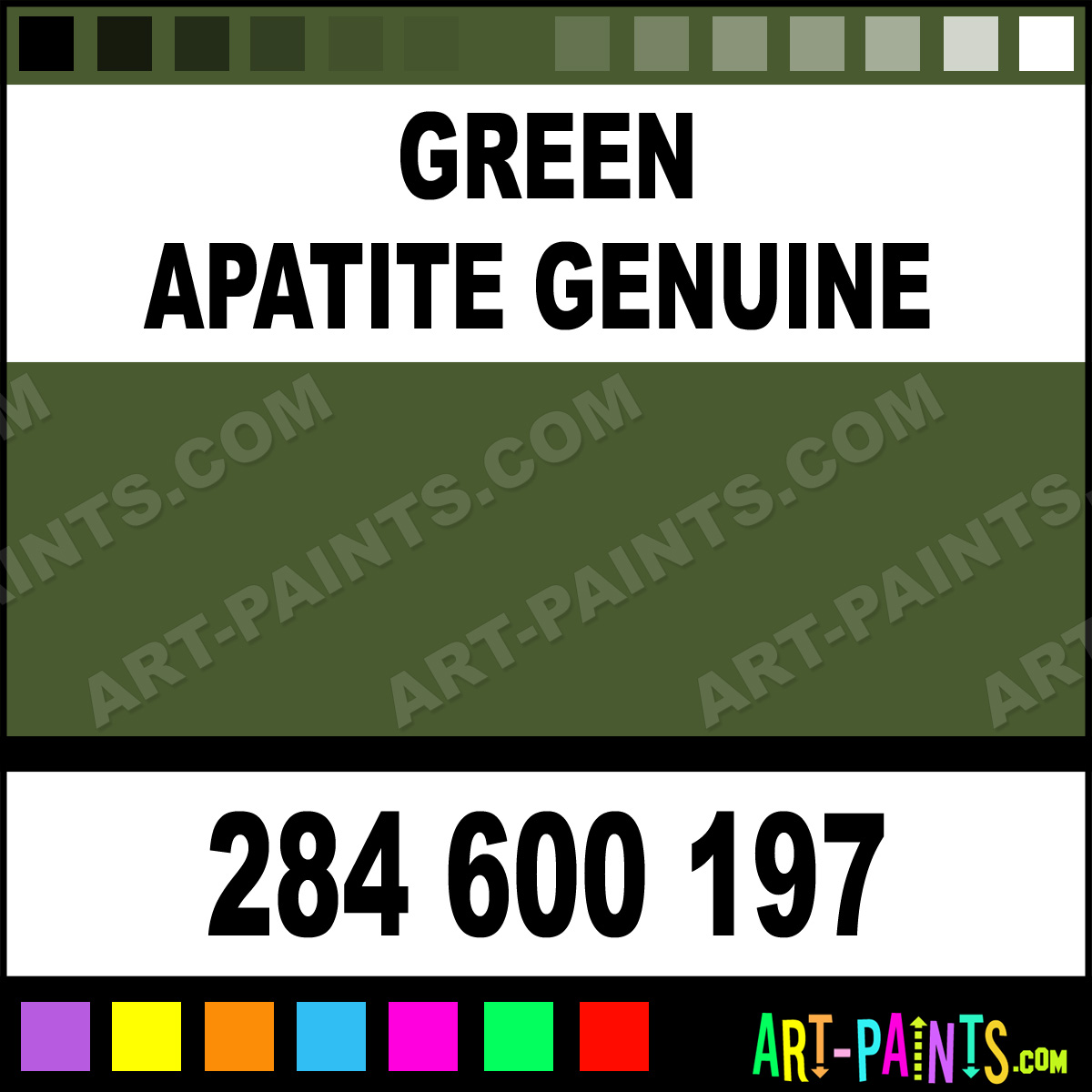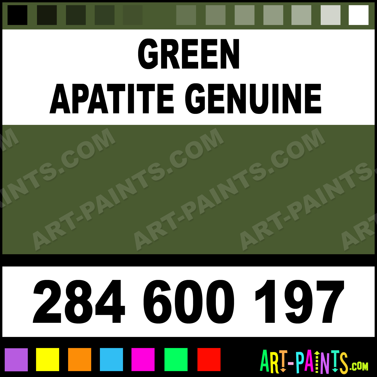 This beautiful Extra Fine Watercolor shade is called Green Apatite Genuine, and comes from a company called Daniel Smith. Their product number, along with the HTML color code, RGB, and CMYK codes are listed below. This Beautiful Shade of Green Apatite Genuine and others can be found in the Daniel Smith Extra Fine Art Paint Gallery! Also be sure to browse through the other wonderful Professional Color Galleries to see more of Daniel Smith Extra Fine Watercolor Brand Paints and other Paint Manufacturers. And as always, Paint Paint Paint! -Art-Paints.com