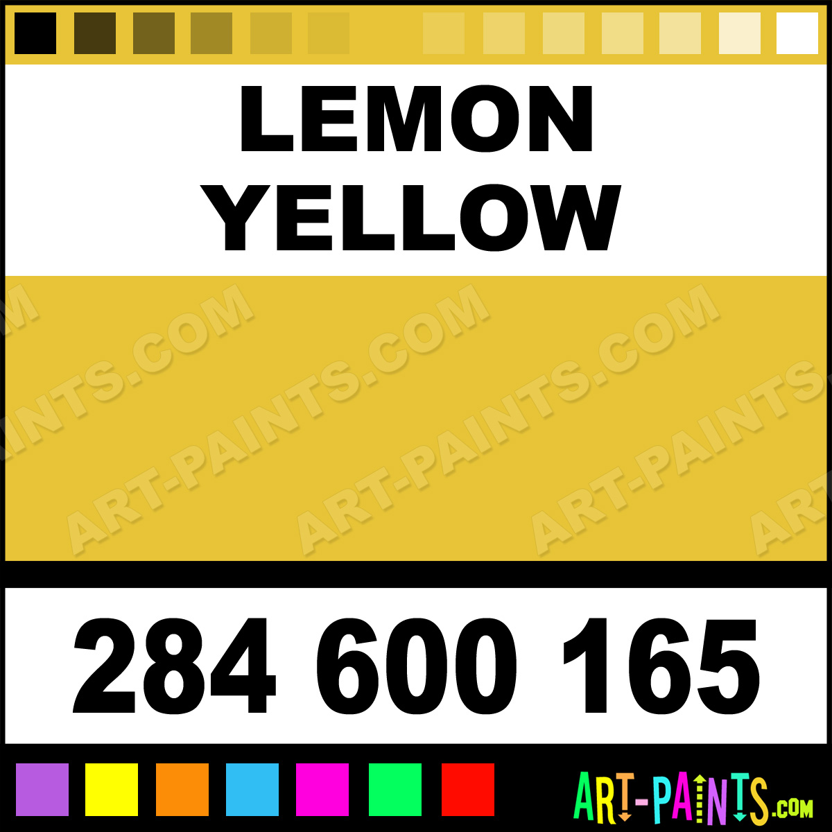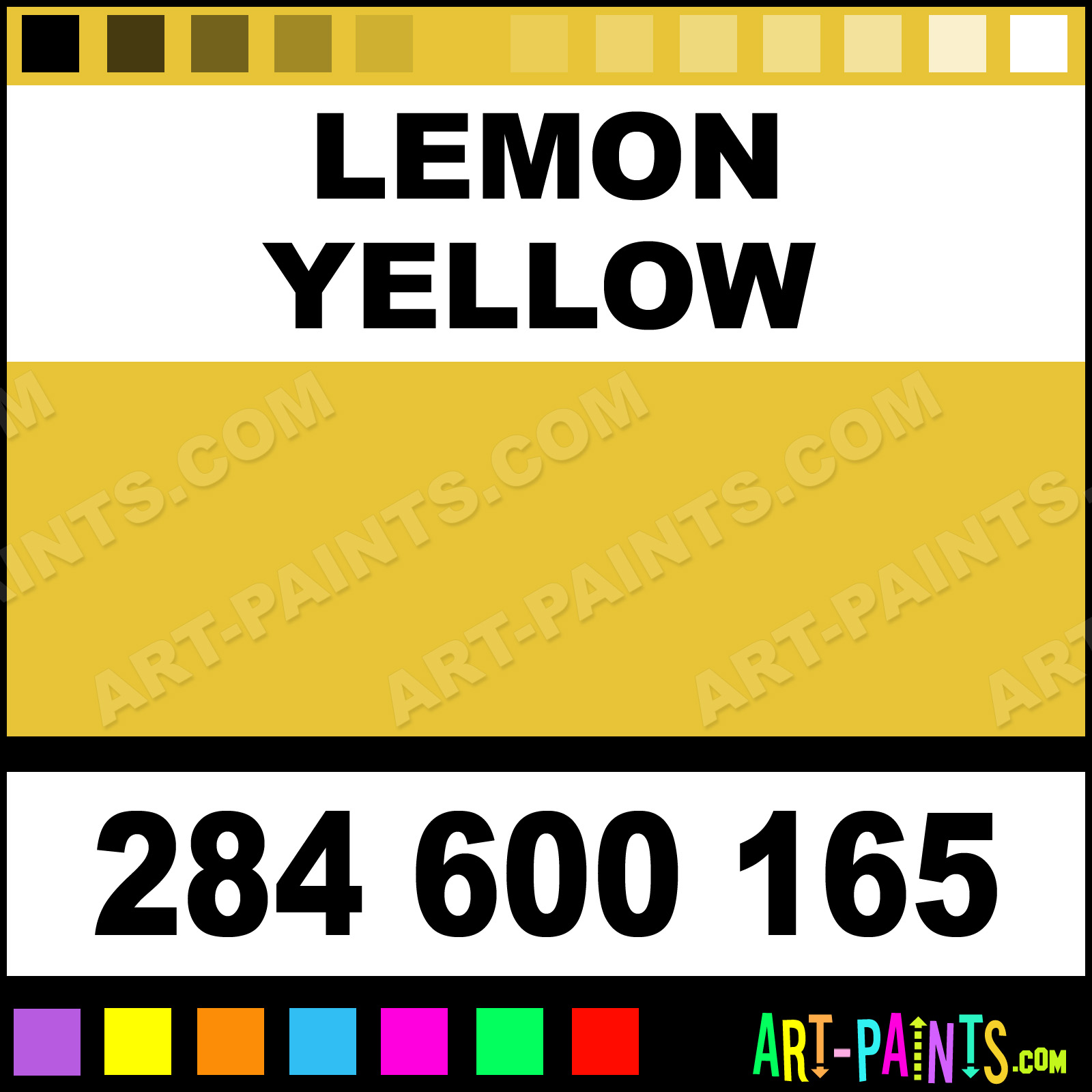 This beautiful Extra Fine Watercolor shade is called Lemon Yellow, and comes from a company called Daniel Smith. Their product number, along with the HTML color code, RGB, and CMYK codes are listed below. This Beautiful Shade of Lemon Yellow and others can be found in the Daniel Smith Extra Fine Art Paint Gallery! Also be sure to browse through the other wonderful Professional Color Galleries to see more of Daniel Smith Extra Fine Watercolor Brand Paints and other Paint Manufacturers. And as always, Paint Paint Paint! -Art-Paints.com