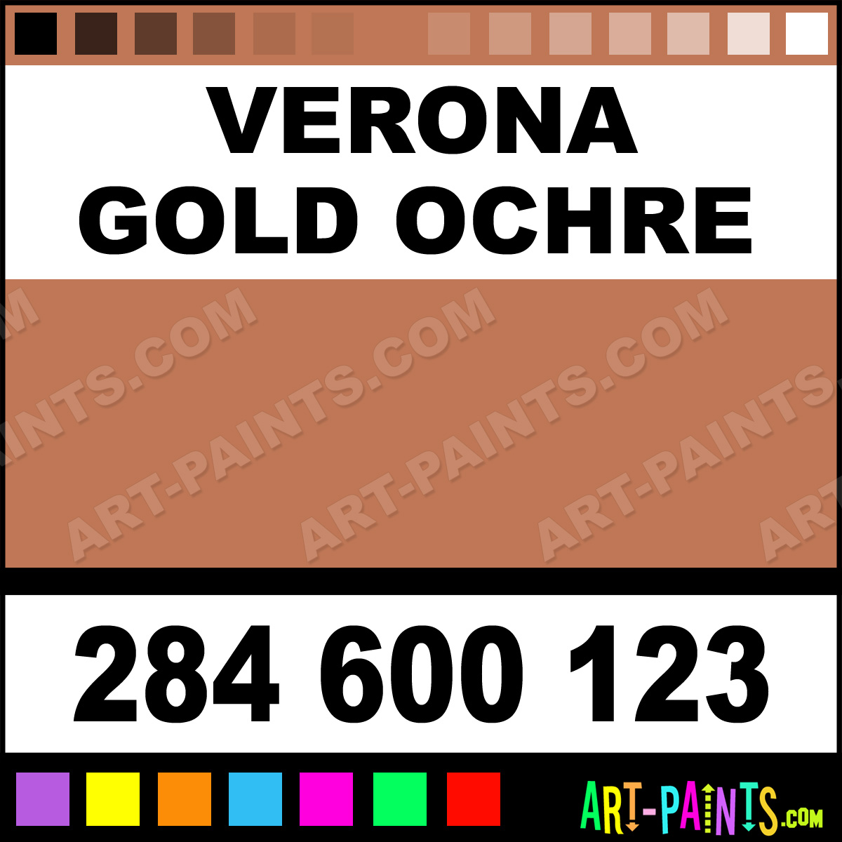 This beautiful Extra Fine Watercolor shade is called Verona Gold Ochre, and comes from a company called Daniel Smith. Their product number, along with the HTML color code, RGB, and CMYK codes are listed below. This Beautiful Shade of Verona Gold Ochre and others can be found in the Daniel Smith Extra Fine Art Paint Gallery! Also be sure to browse through the other wonderful Professional Color Galleries to see more of Daniel Smith Extra Fine Watercolor Brand Paints and other Paint Manufacturers. And as always, Paint Paint Paint! -Art-Paints.com