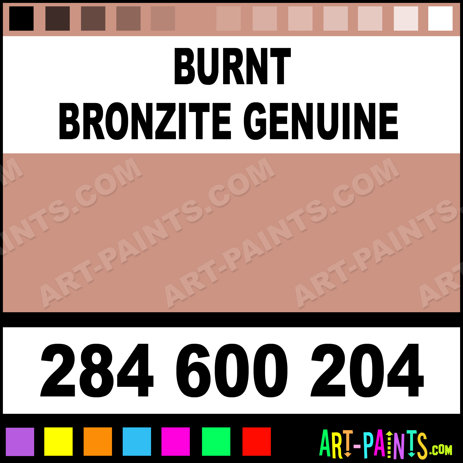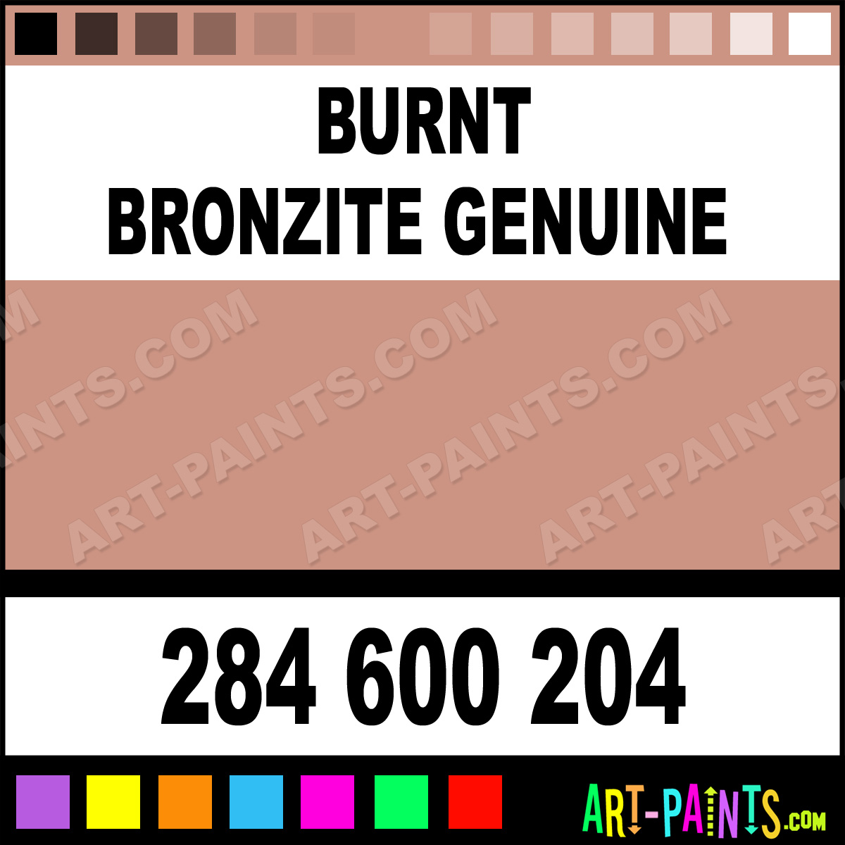 This beautiful Primatek Watercolor shade is called Burnt Bronzite Genuine, and comes from a company called Daniel Smith. Their product number, along with the HTML color code, RGB, and CMYK codes are listed below. This Beautiful Shade of Burnt Bronzite Genuine and others can be found in the Daniel Smith Primatek Art Paint Gallery! Also be sure to browse through the other wonderful Professional Color Galleries to see more of Daniel Smith Primatek Watercolor Brand Paints and other Paint Manufacturers. And as always, Paint Paint Paint! -Art-Paints.com