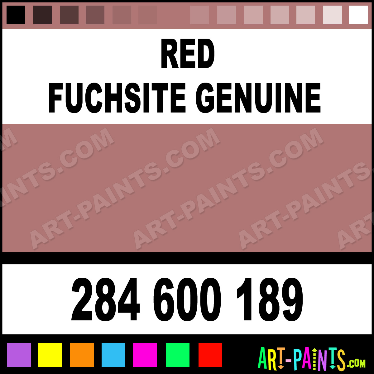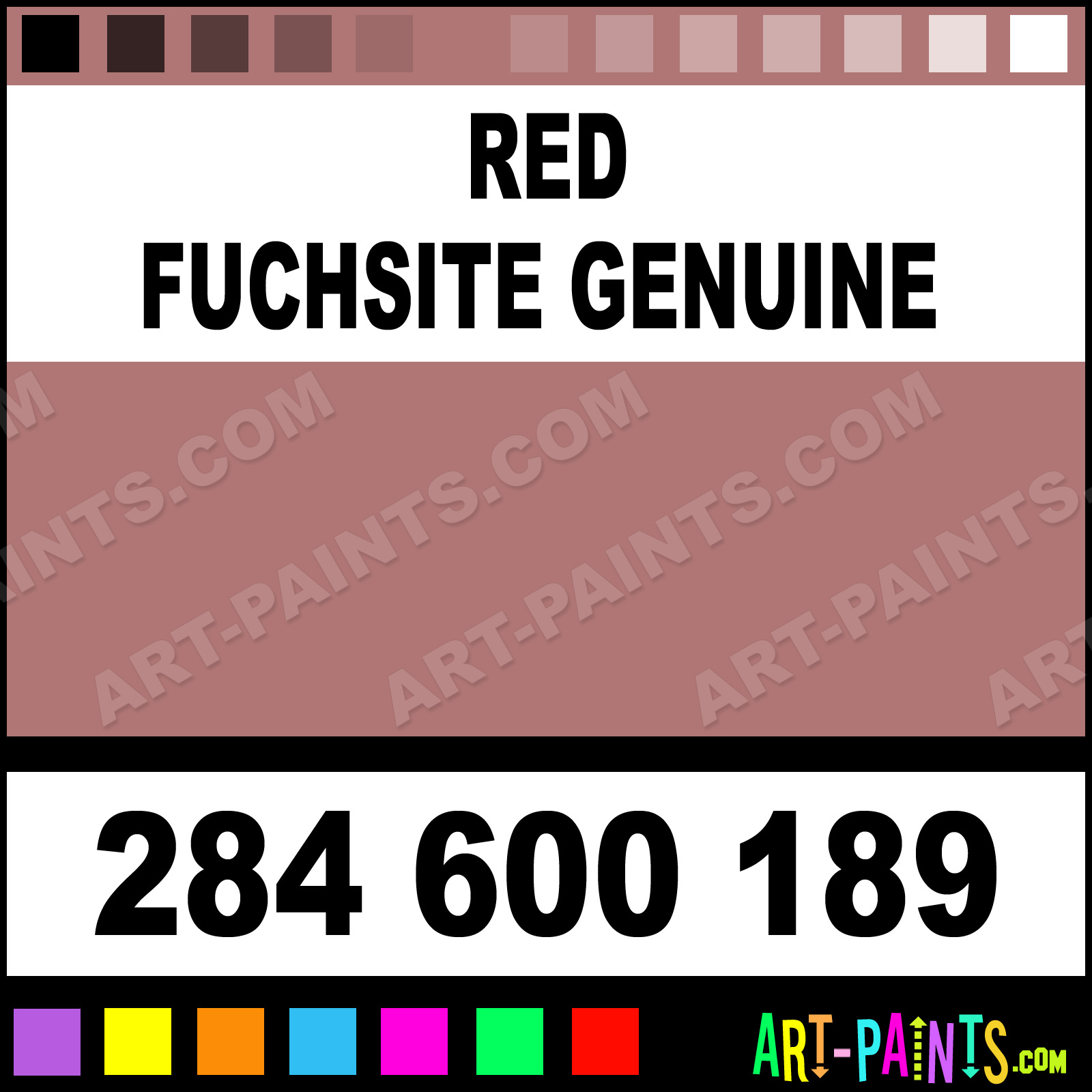 This beautiful Primatek Watercolor shade is called Red Fuchsite Genuine, and comes from a company called Daniel Smith. Their product number, along with the HTML color code, RGB, and CMYK codes are listed below. This Beautiful Shade of Red Fuchsite Genuine and others can be found in the Daniel Smith Primatek Art Paint Gallery! Also be sure to browse through the other wonderful Professional Color Galleries to see more of Daniel Smith Primatek Watercolor Brand Paints and other Paint Manufacturers. And as always, Paint Paint Paint! -Art-Paints.com