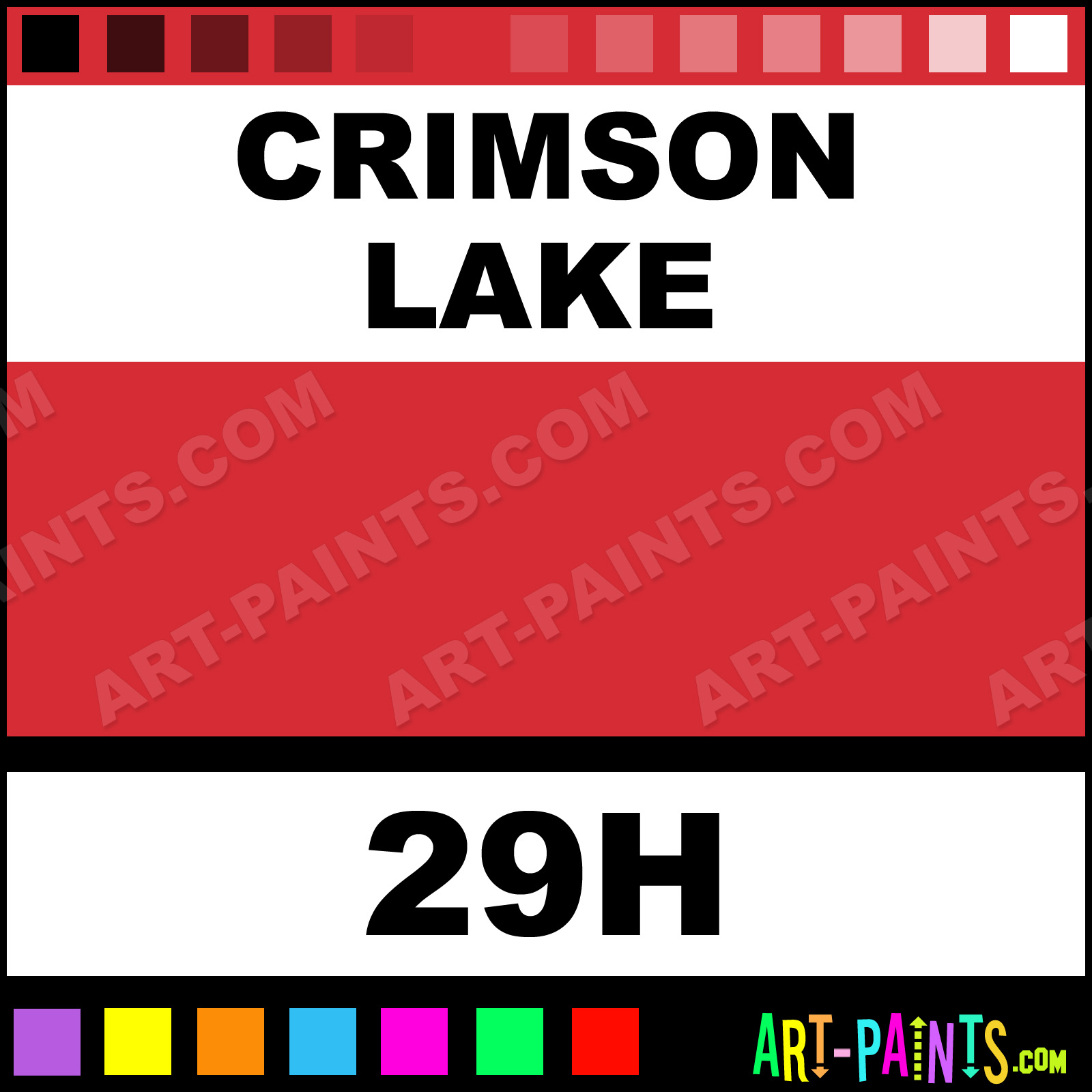 This beautiful Hydrus Watercolor shade is called Crimson Lake, and comes from a company called Dr Ph Martins. Their product number, along with the HTML color code, RGB, and CMYK codes are listed below. This Beautiful Shade of Crimson Lake and others can be found in the Dr Ph Martins Hydrus Art Paint Gallery! Also be sure to browse through the other wonderful Professional Color Galleries to see more of Dr Ph Martins Hydrus Watercolor Brand Paints and other Paint Manufacturers. And as always, Paint Paint Paint! -Art-Paints.com