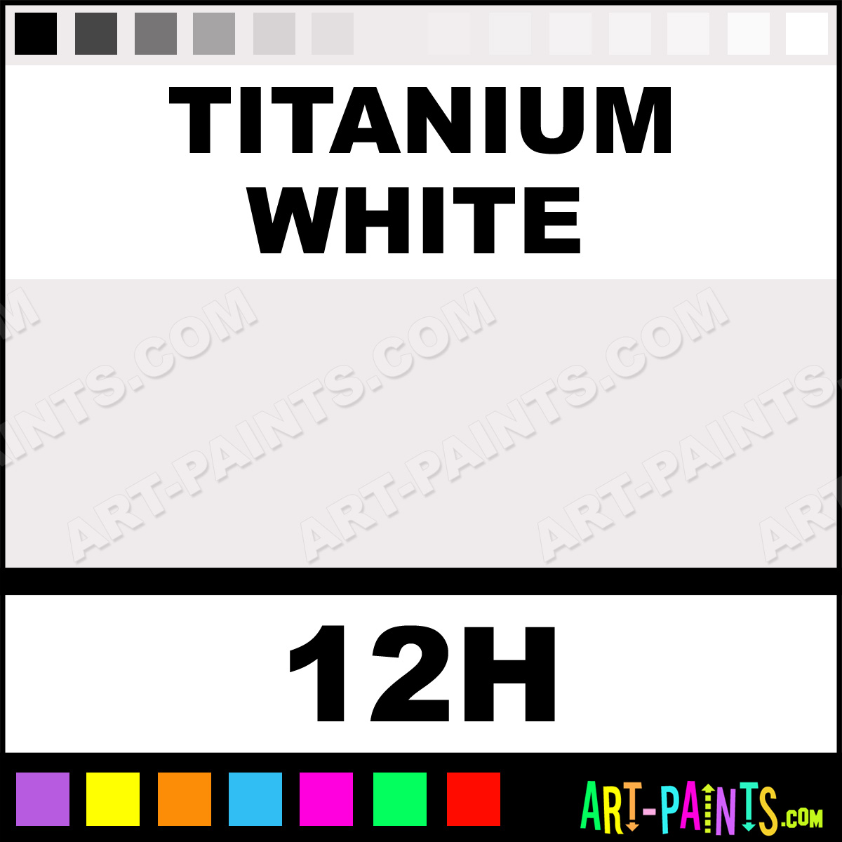 This beautiful Hydrus Watercolor shade is called Titanium White, and comes from a company called Dr Ph Martins. Their product number, along with the HTML color code, RGB, and CMYK codes are listed below. This Beautiful Shade of Titanium White and others can be found in the Dr Ph Martins Hydrus Art Paint Gallery! Also be sure to browse through the other wonderful Professional Color Galleries to see more of Dr Ph Martins Hydrus Watercolor Brand Paints and other Paint Manufacturers. And as always, Paint Paint Paint! -Art-Paints.com