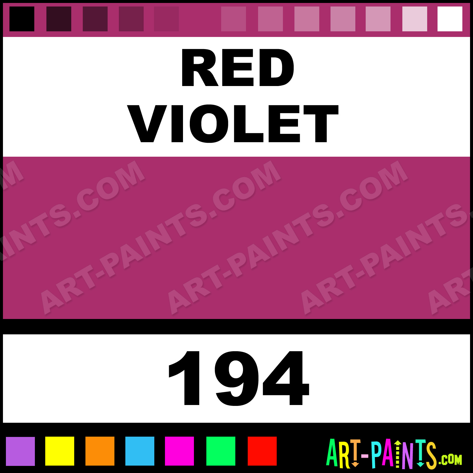 This beautiful Albrecht Durer Watercolor shade is called Red Violet, and comes from a company called Faber Castell. Their product number, along with the HTML color code, RGB, and CMYK codes are listed below. This Beautiful Shade of Red Violet and others can be found in the Faber Castell Albrecht Durer Art Paint Gallery! Also be sure to browse through the other wonderful Professional Color Galleries to see more of Faber Castell Albrecht Durer Watercolor Brand Paints and other Paint Manufacturers. And as always, Paint Paint Paint! -Art-Paints.com