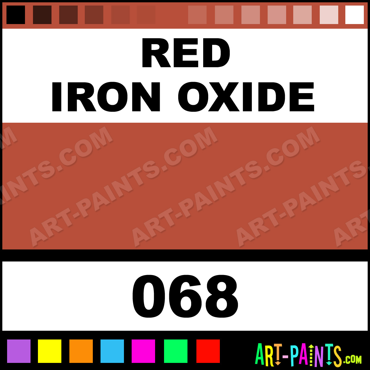 This beautiful Finest Artists Watercolor shade is called Red Iron Oxide, and comes from a company called Grumbacher. Their product number, along with the HTML color code, RGB, and CMYK codes are listed below. This Beautiful Shade of Red Iron Oxide and others can be found in the Grumbacher Finest Artists Art Paint Gallery! Also be sure to browse through the other wonderful Professional Color Galleries to see more of Grumbacher Finest Artists Watercolor Brand Paints and other Paint Manufacturers. And as always, Paint Paint Paint! -Art-Paints.com