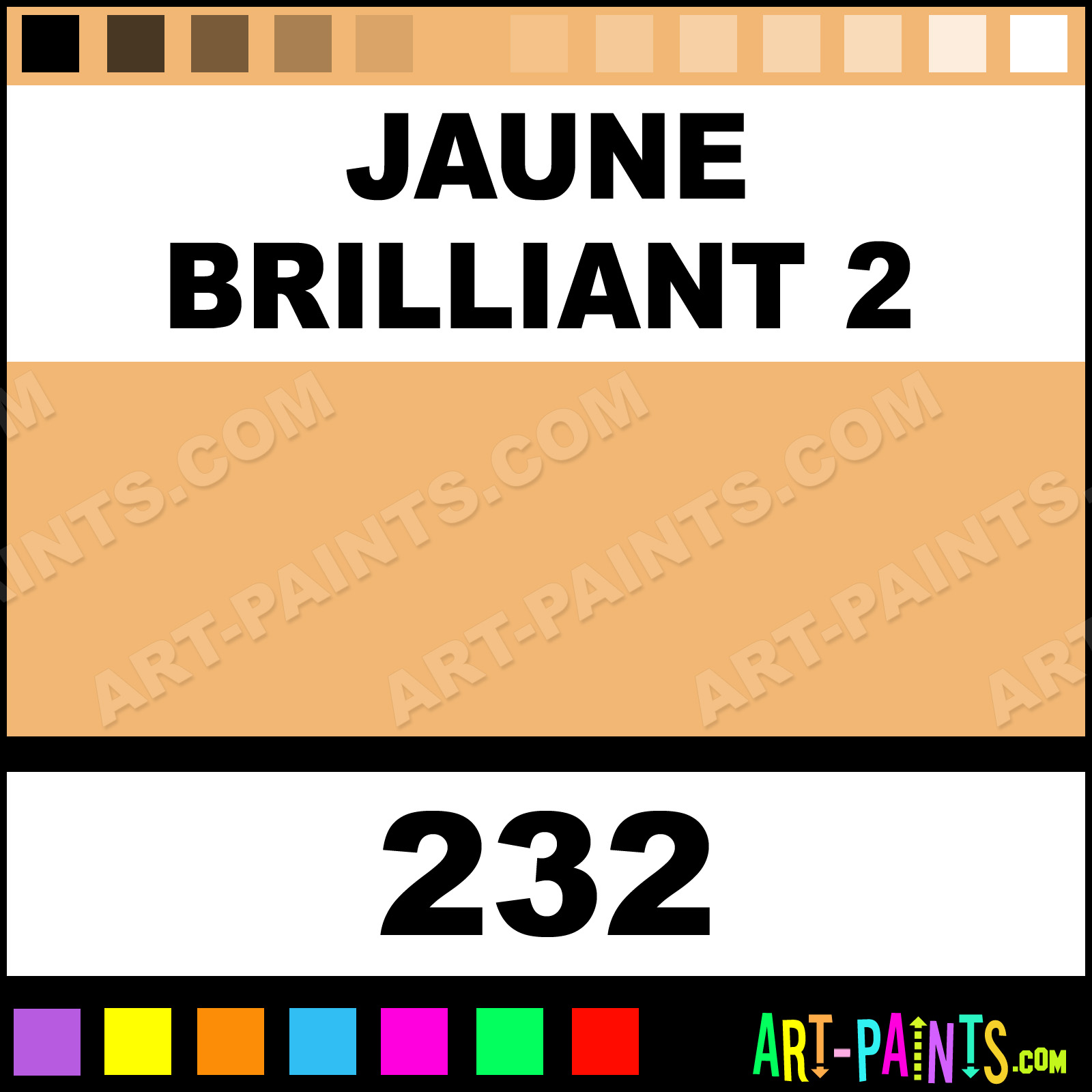 This beautiful Artists Watercolor shade is called Jaune Brilliant 2, and comes from a company called Holbein. Their product number, along with the HTML color code, RGB, and CMYK codes are listed below. This Beautiful Shade of Jaune Brilliant 2 and others can be found in the Holbein Artists Art Paint Gallery! Also be sure to browse through the other wonderful Professional Color Galleries to see more of Holbein Artists Watercolor Brand Paints and other Paint Manufacturers. And as always, Paint Paint Paint! -Art-Paints.com
