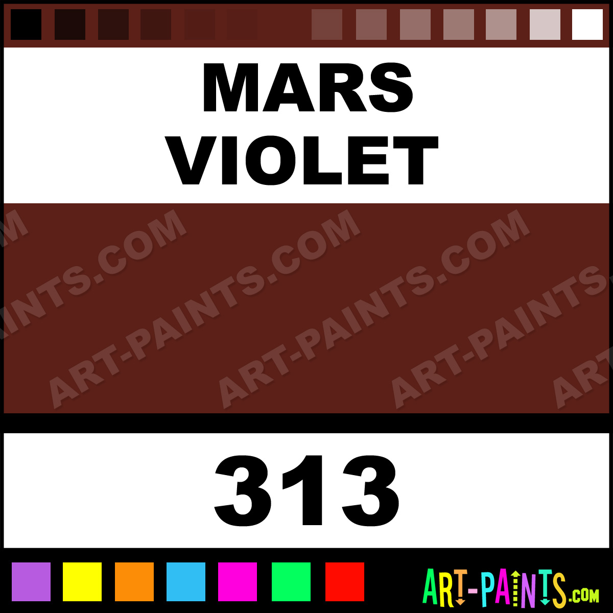 This beautiful Artists Watercolor shade is called Mars Violet, and comes from a company called Holbein. Their product number, along with the HTML color code, RGB, and CMYK codes are listed below. This Beautiful Shade of Mars Violet and others can be found in the Holbein Artists Art Paint Gallery! Also be sure to browse through the other wonderful Professional Color Galleries to see more of Holbein Artists Watercolor Brand Paints and other Paint Manufacturers. And as always, Paint Paint Paint! -Art-Paints.com