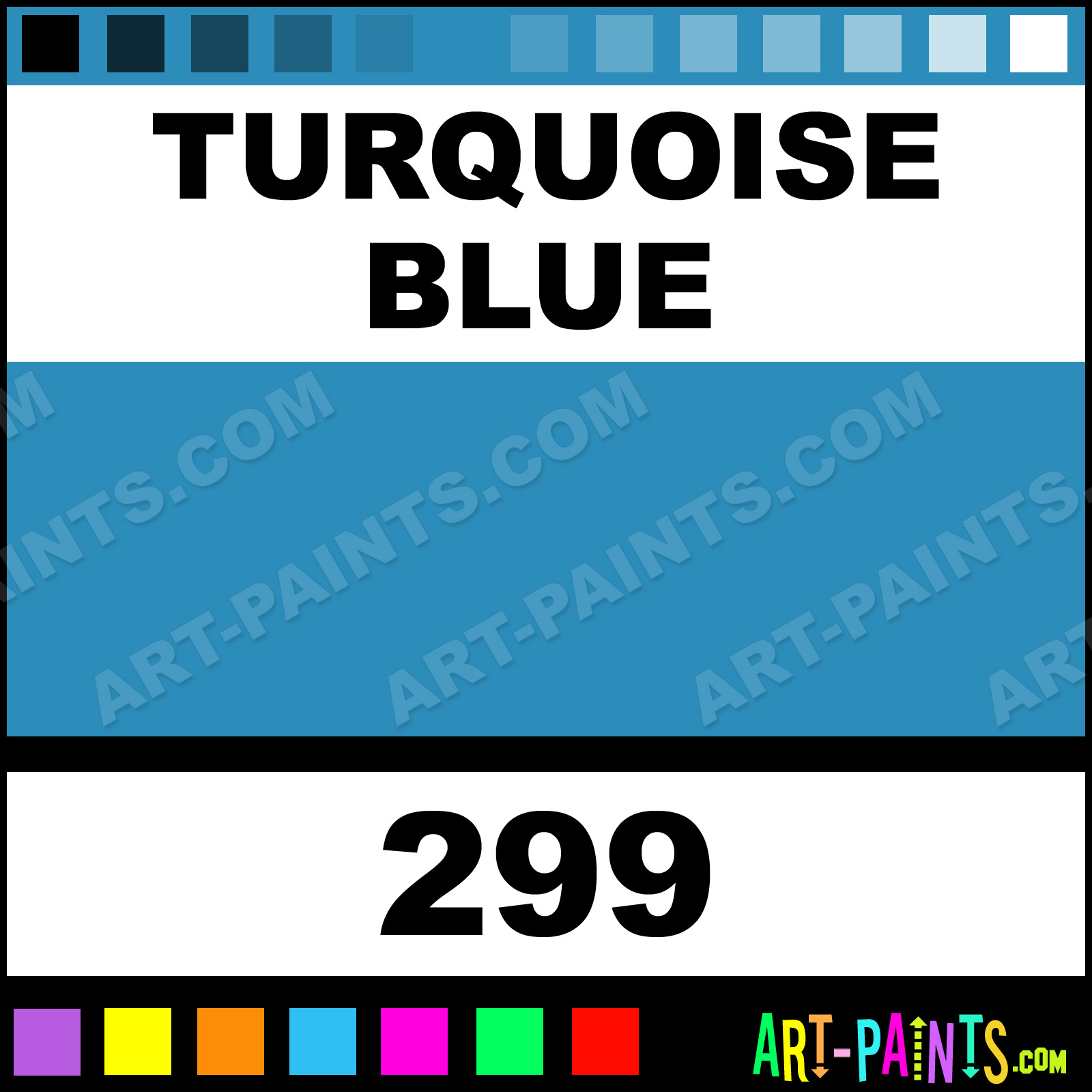 This beautiful Artists Watercolor shade is called Turquoise Blue, and comes from a company called Holbein. Their product number, along with the HTML color code, RGB, and CMYK codes are listed below. This Beautiful Shade of Turquoise Blue and others can be found in the Holbein Artists Art Paint Gallery! Also be sure to browse through the other wonderful Professional Color Galleries to see more of Holbein Artists Watercolor Brand Paints and other Paint Manufacturers. And as always, Paint Paint Paint! -Art-Paints.com