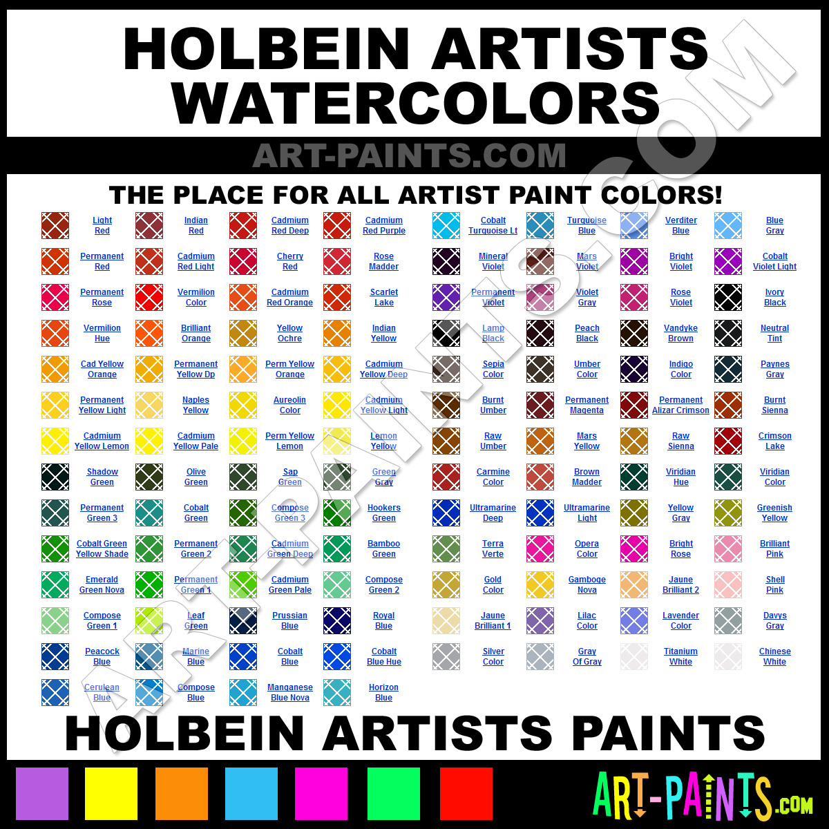 Holbein knows Watercolor Paints! They make wonderful brands of paint for all types of artists. They strive to perfect the process of color and are one of the most popular Watercolor Paint Brand companies in the world. Enjoy their entire brand collection from the list below. Holbein makes a couple different types of Watercolor Paint Brands including its Artists Paints and its Irodori Antique Paints! Choose an Watercolor Paint type below to view that brand and all the related Color Paints and Hues in it. Paint on!     -Art-Paints.com