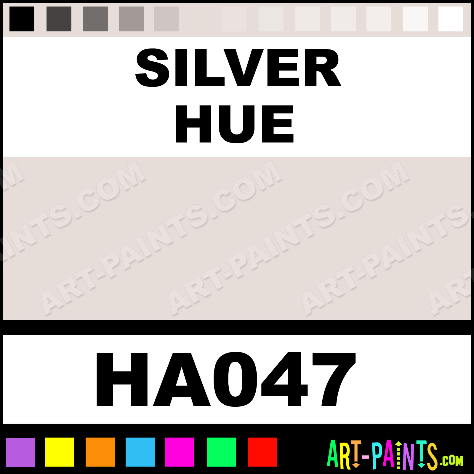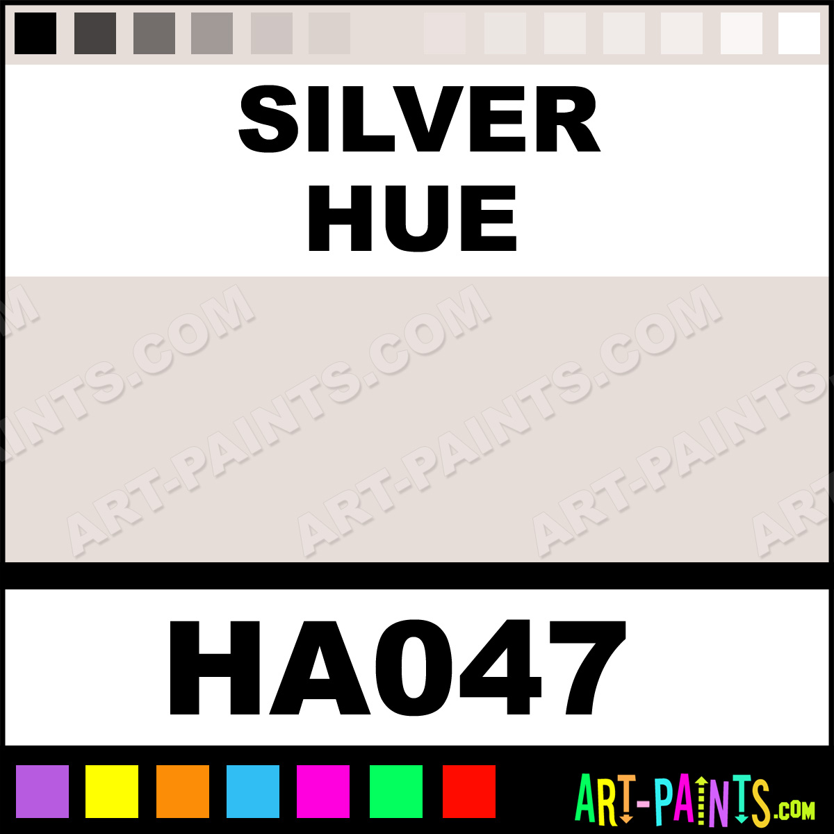 This beautiful Irodori Antique Watercolor shade is called Silver, and comes from a company called Holbein. Their product number, along with the HTML color code, RGB, and CMYK codes are listed below. This Beautiful Shade of Silver and others can be found in the Holbein Irodori Antique Art Paint Gallery! Also be sure to browse through the other wonderful Professional Color Galleries to see more of Holbein Irodori Antique Watercolor Brand Paints and other Paint Manufacturers. And as always, Paint Paint Paint! -Art-Paints.com