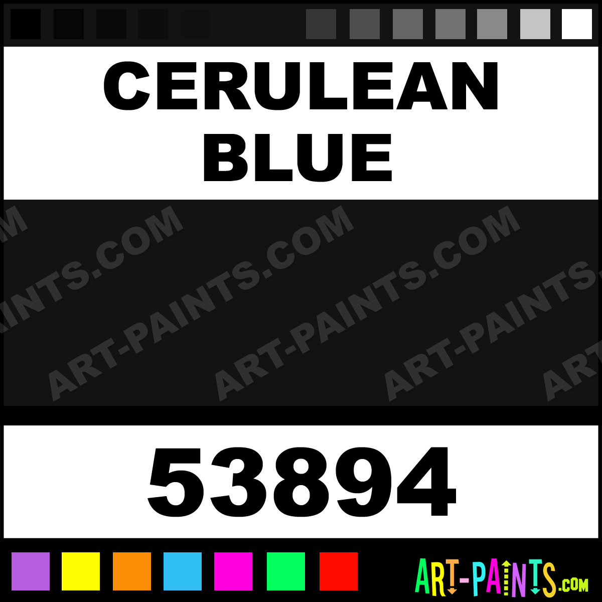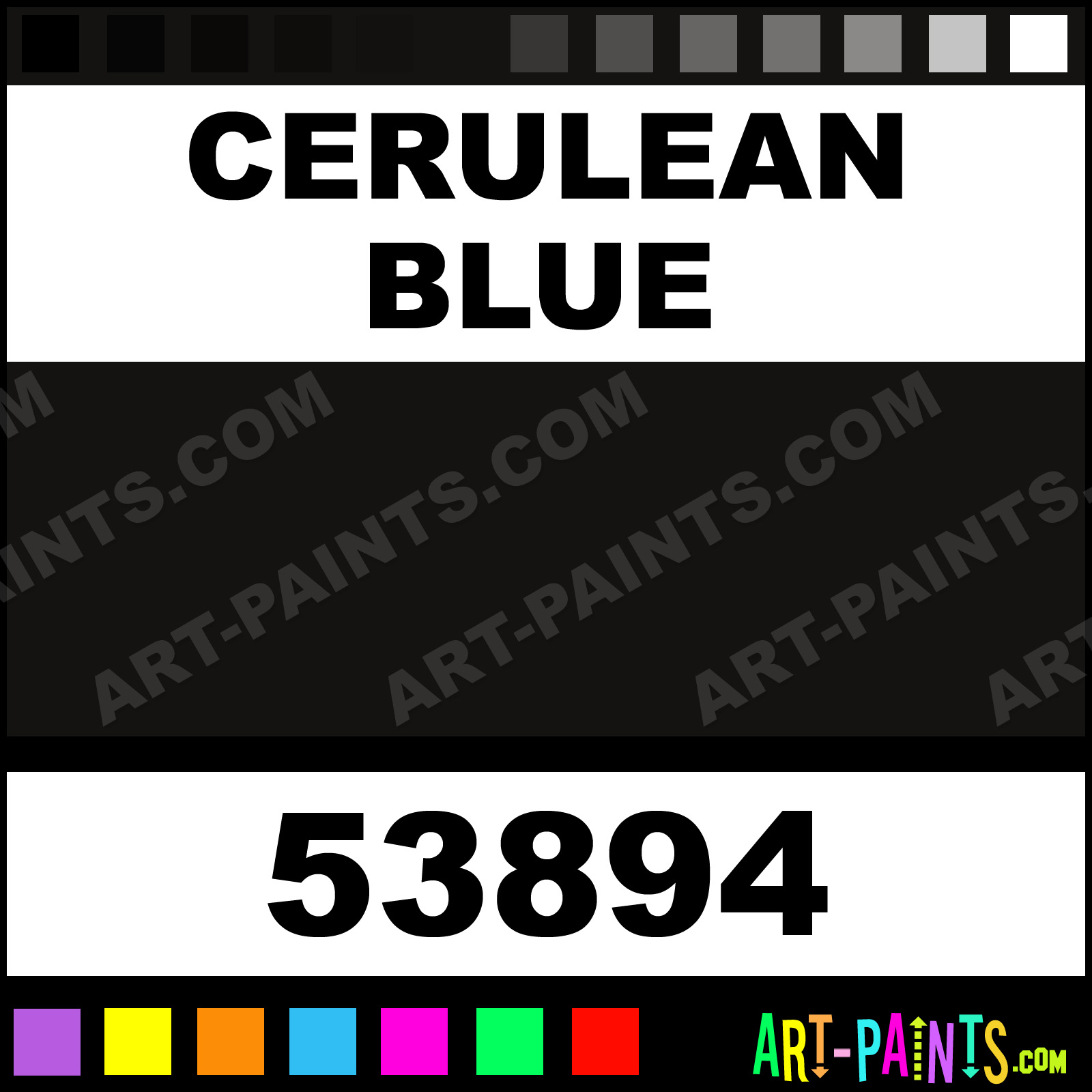 This beautiful Student Watercolor shade is called Cerulean Blue, and comes from a company called Maries. Their product number, along with the HTML color code, RGB, and CMYK codes are listed below. This Beautiful Shade of Cerulean Blue and others can be found in the Maries Student Art Paint Gallery! Also be sure to browse through the other wonderful Professional Color Galleries to see more of Maries Student Watercolor Brand Paints and other Paint Manufacturers. And as always, Paint Paint Paint! -Art-Paints.com