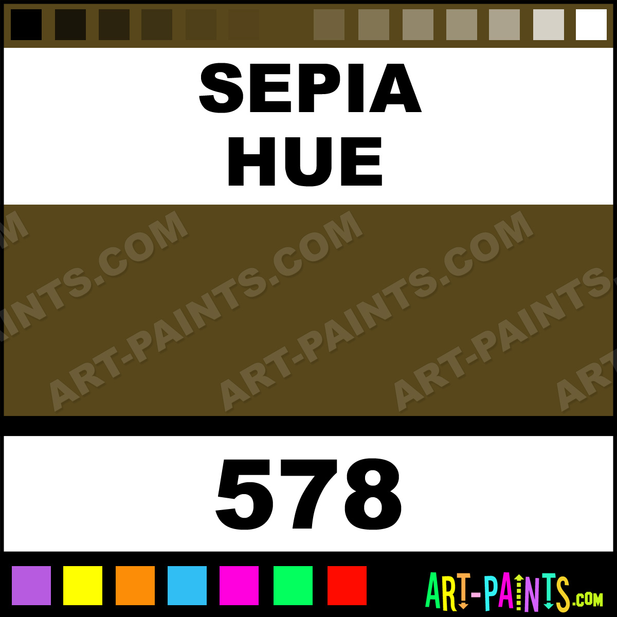 This beautiful Extra Fine Watercolor shade is called Sepia, and comes from a company called MIR. Their product number, along with the HTML color code, RGB, and CMYK codes are listed below. This Beautiful Shade of Sepia and others can be found in the MIR Extra Fine Art Paint Gallery! Also be sure to browse through the other wonderful Professional Color Galleries to see more of MIR Extra Fine Watercolor Brand Paints and other Paint Manufacturers. And as always, Paint Paint Paint! -Art-Paints.com