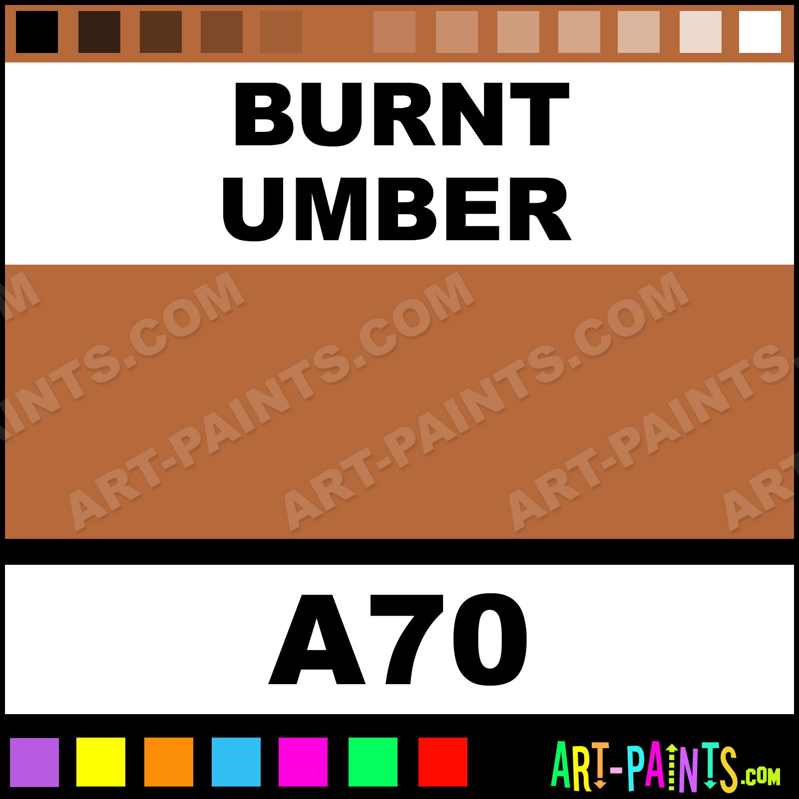 This beautiful Classic Watercolor shade is called Burnt Umber, and comes from a company called Old Holland. Their product number, along with the HTML color code, RGB, and CMYK codes are listed below. This Beautiful Shade of Burnt Umber and others can be found in the Old Holland Classic Art Paint Gallery! Also be sure to browse through the other wonderful Professional Color Galleries to see more of Old Holland Classic Watercolor Brand Paints and other Paint Manufacturers. And as always, Paint Paint Paint! -Art-Paints.com